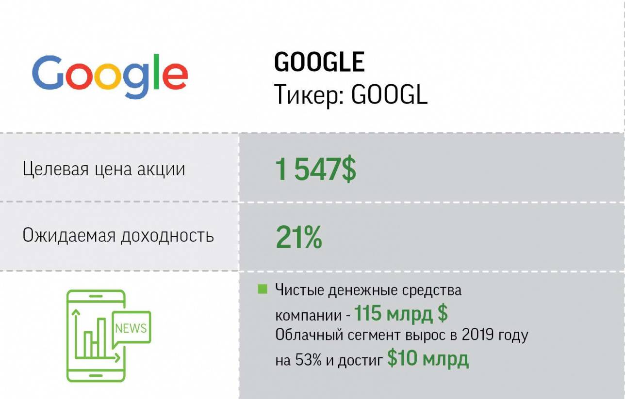 Практически монопольные позиции корневого поискового бизнеса Google, а также высокие темпы роста в перспективных точках роста в разных сферах – от YouTube, Google Cloud до разработки технологий беспилотных автомобилей Waymo – позволяет считать акции компании вполне сбалансированным выбором для среднесрочного инвестора, учитывая исторически низкие мультипликаторы, полученные в ходе последней коррекции.