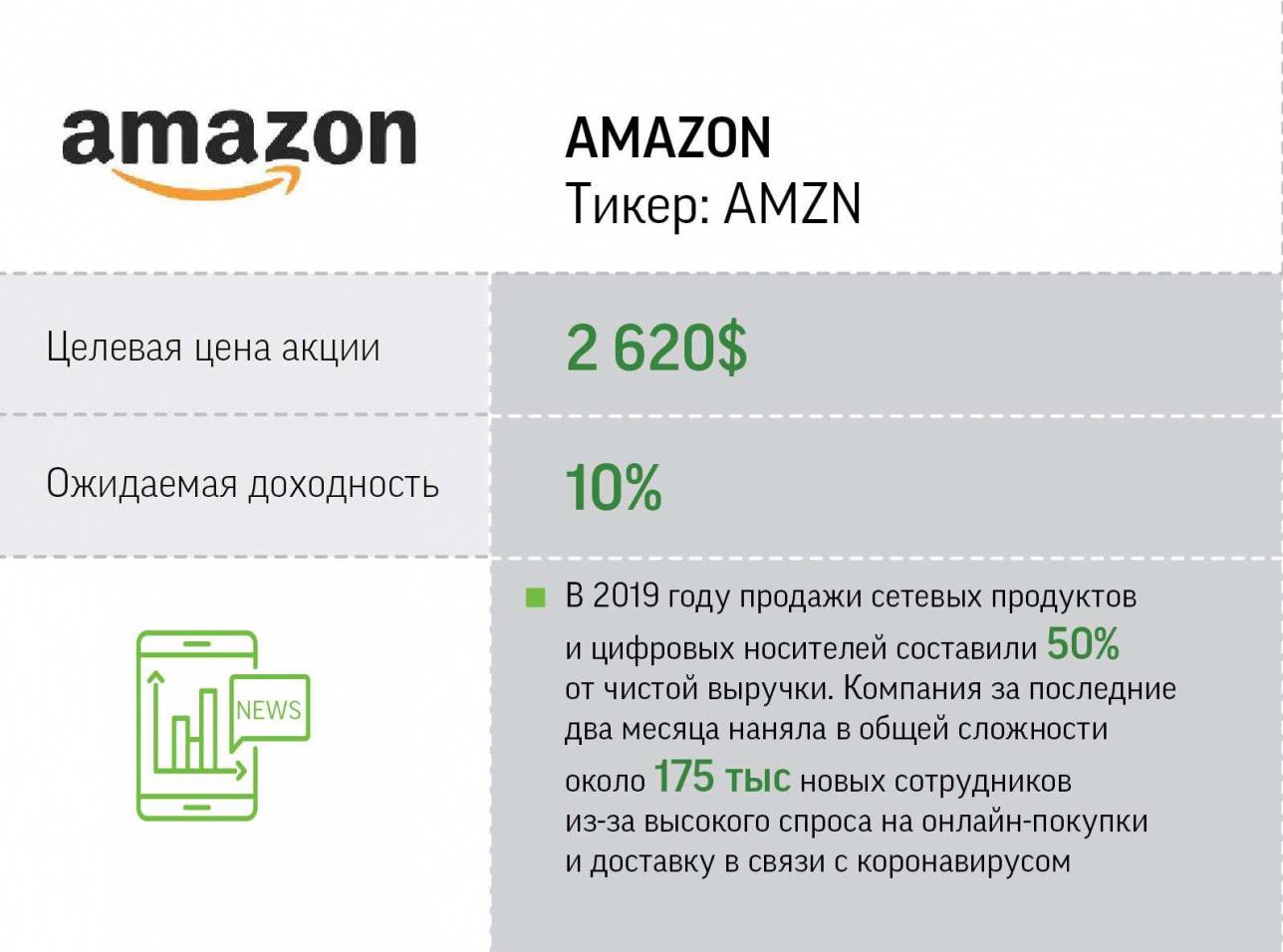 Amazon является одним из самых кассовых онлайн-ритейлеров в мире. В 2019 году продажи сетевых продуктов и цифровых носителей составили 50% от чистой выручки, следом идут комиссионные, связанные с выполнением и доставкой, а также услуги сторонним продавцам (19%), доходы за облачные вычисления, хранилище, базы данных и другие предложения Amazon WebServices (13%), начальные членские взносы и другие услуги на основе подписки (7%), продажи продуктов в Whole Foods и других форматах розничных магазинов (6%).