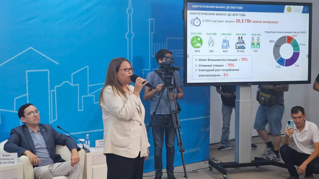 Заместитель директора департамента атомной энергетики и промышленности Министерства энергетики Республики Казахстан Гульмира Мурсалова представила статистические данные по влиянию различных источников энергии на экологию. По её словам, в Казахстане 80% выбросов углекислого газа приходится на энергетический сектор. "Создавая станции зелёной энергии, мы можем сократить выбросы углекислого газа до 70 млн тонн", – уточнила она. В зелёные источники энергии входят солнечные, ветряные, гидроэлектростанции, а также атомные электростанции. Эксперт напомнила, что строительство АЭС будет осуществлено только в случае положительного результата предстоящего референдума.