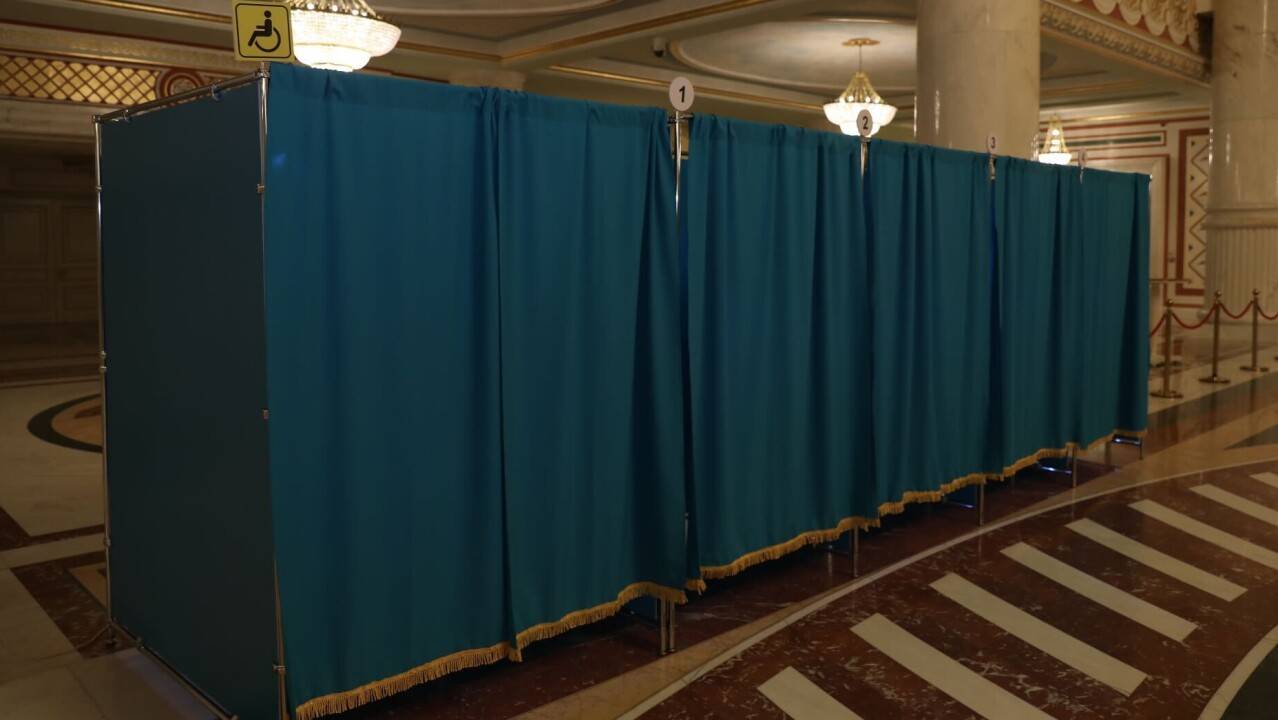 Яркая процессия прошествовала в зал, где казахстанские персонажи Ханшайым и Арлан, точнее актёры Диана Абуова и Ислам Ринатов, воспользовались своим гражданским правом и проголосовали.
