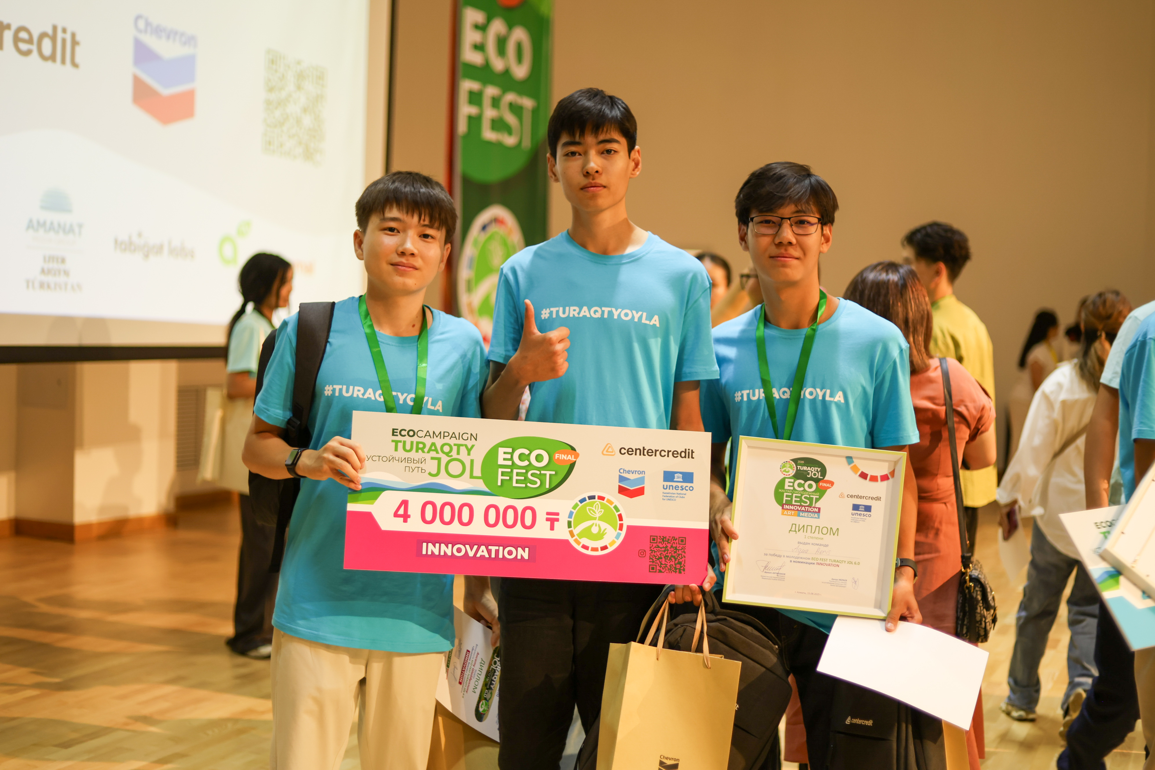Призовой фонд составил 10 миллионов тенге. Обладатели первого места получили 4 миллиона. Мы понимаем, что для полноценного запуска экостартапа эта сумма невелика, между тем для школьников на первом этапе её достаточно: провести лабораторные исследования, приобрести необходимые материалы, разработать прототип и представить пилотную версию проекта.