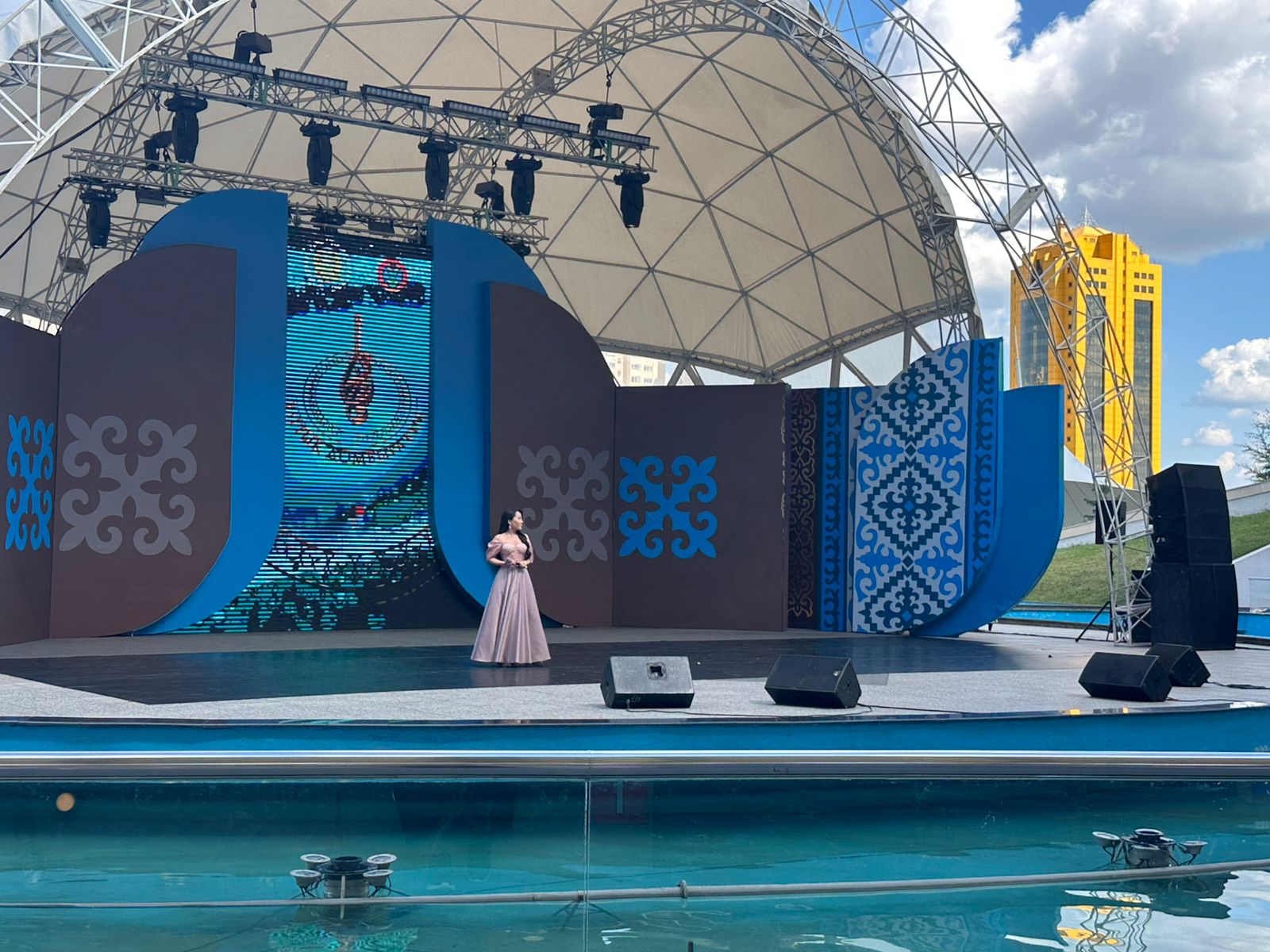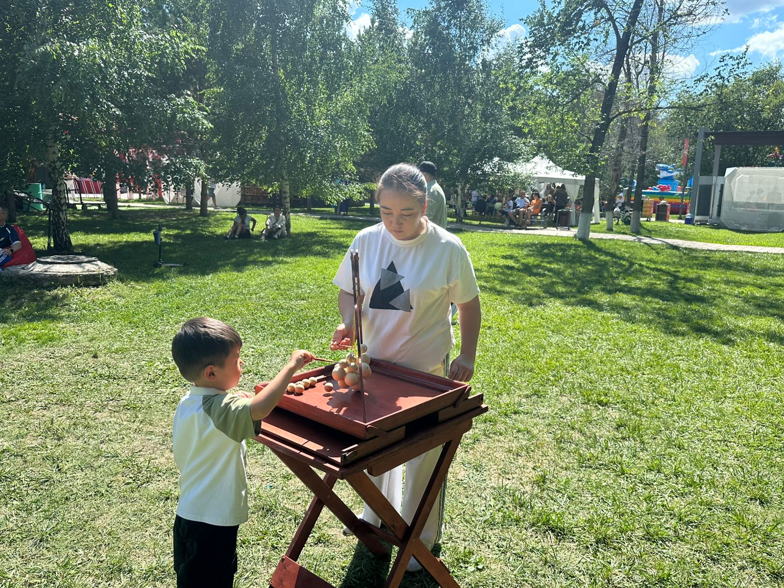 Организован фестиваль столичным управлением культуры. На территории парка в амфитеатре проходит праздничный концерт – он посвящён сразу двум знаменательным датам – Дню города и Дню домбры.