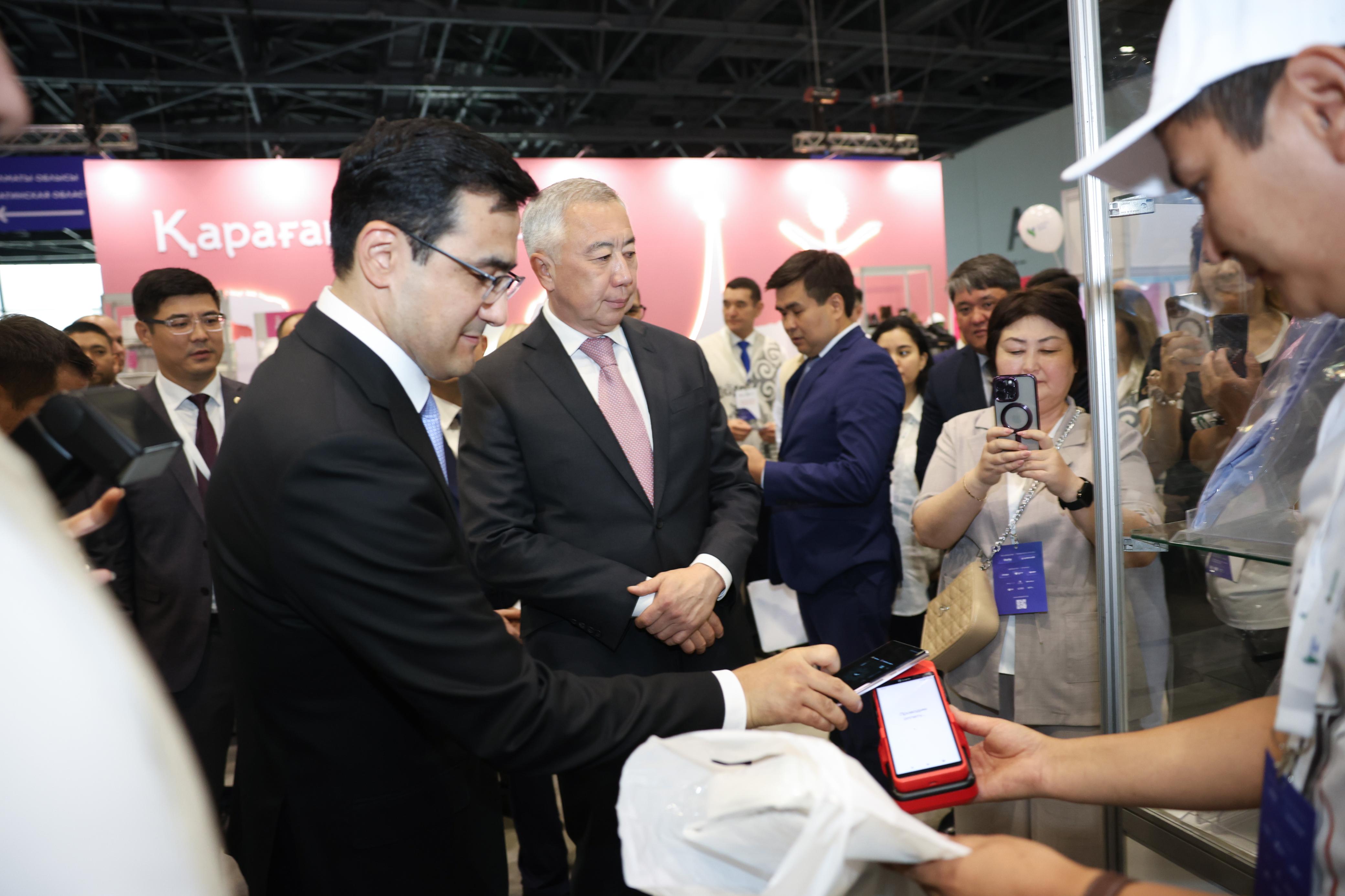 Затем Жумангарин с Карагойшиным посетили выставочные стенды, где была выставлена продукция, и поговорили с предпринимателями.