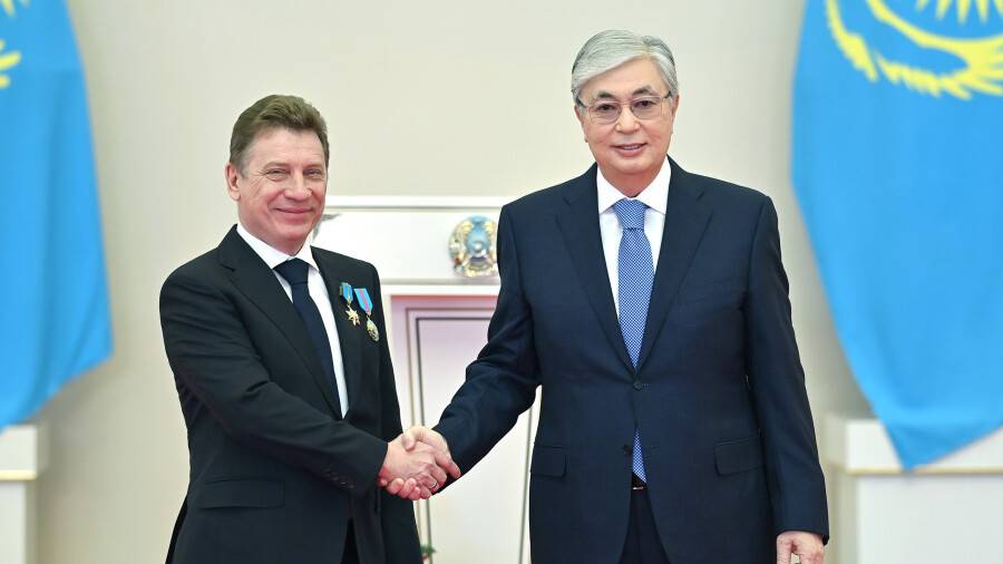 Нагрудный знак Александру Хмелеву вручил президент Казахстана Касым-Жомарт Токаев.
