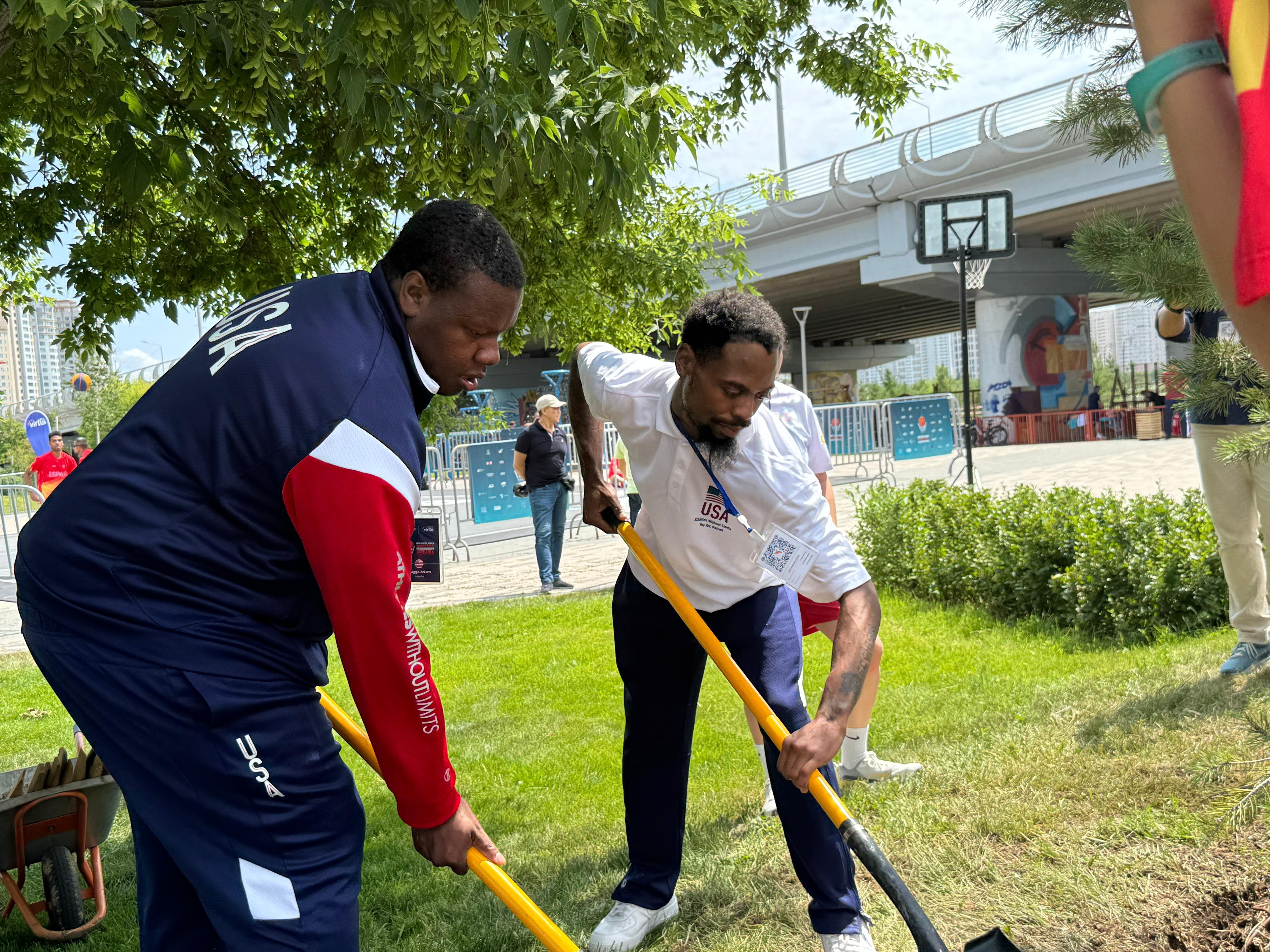 Сегодня участники спортивного мероприятия сделали еще один исторический шаг – посадили деревья в Триатлон-парке – тем самым увековечив свой приезд в Астану.