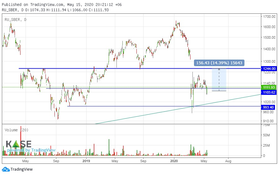 Традиционно Сбербанк является самой ликвидной бумагой на российском рынке и самой популярной среди иностранных инвесторов. Из-за этого акции Сбербанка называют флагштоком местного рынка, что даёт ему сильную корреляцию с индексом РТС. Улучшение текущих перспектив нефтяного рынка может благоприятно сказаться на индексе РТС. Так, индекс РТС при сохранении текущего позитивного фона может пробить уровень 1160 пунктов, что даст хорошую возможность для дальнейшего роста.