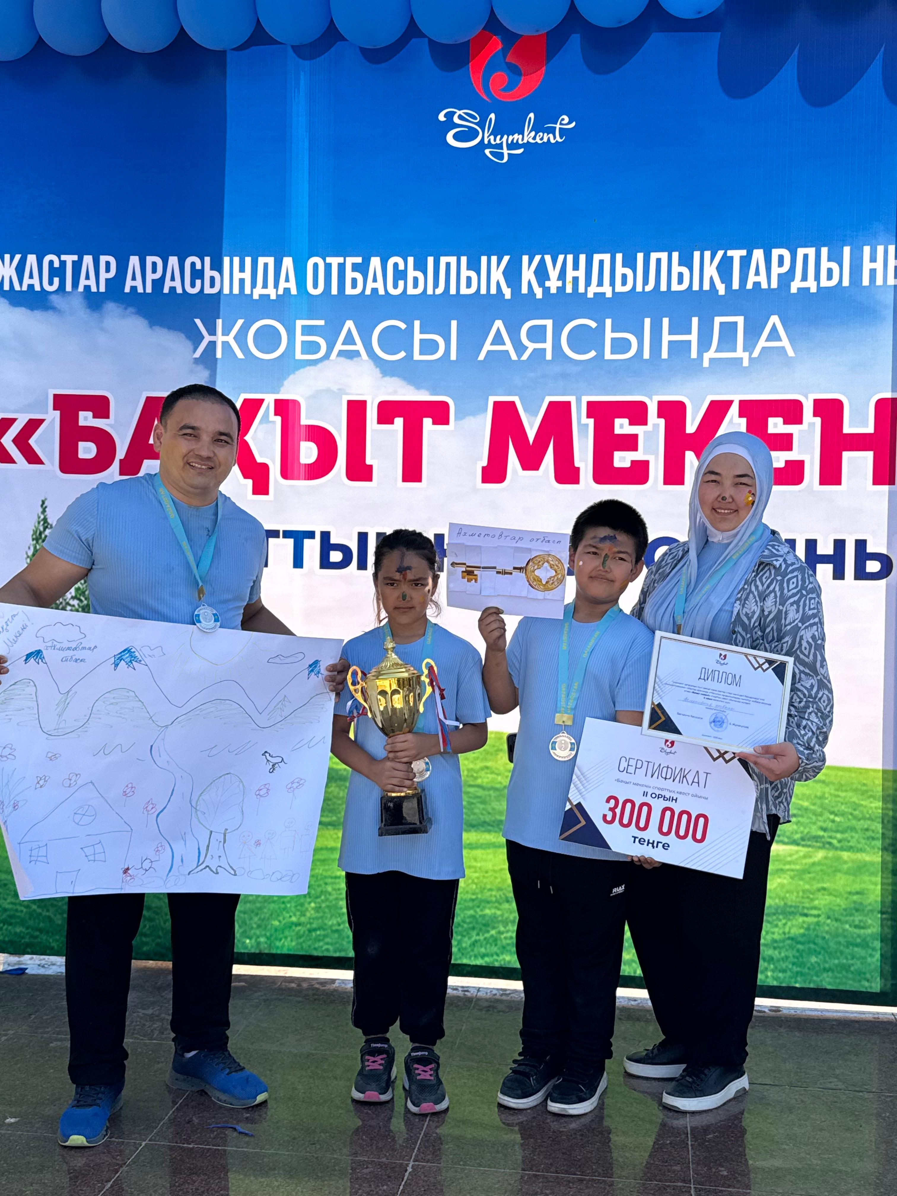 Помимо денежного приза семья получила кубок и звание самой сплочённой молодой семьи Шымкента.