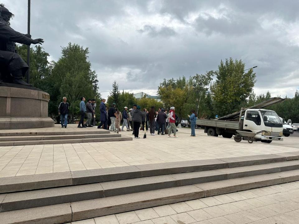 Участники акции очистили от мусора территорию вокруг памятника Керей хану и Жанибек хану, расположенного в сквере у Музея первого президента.