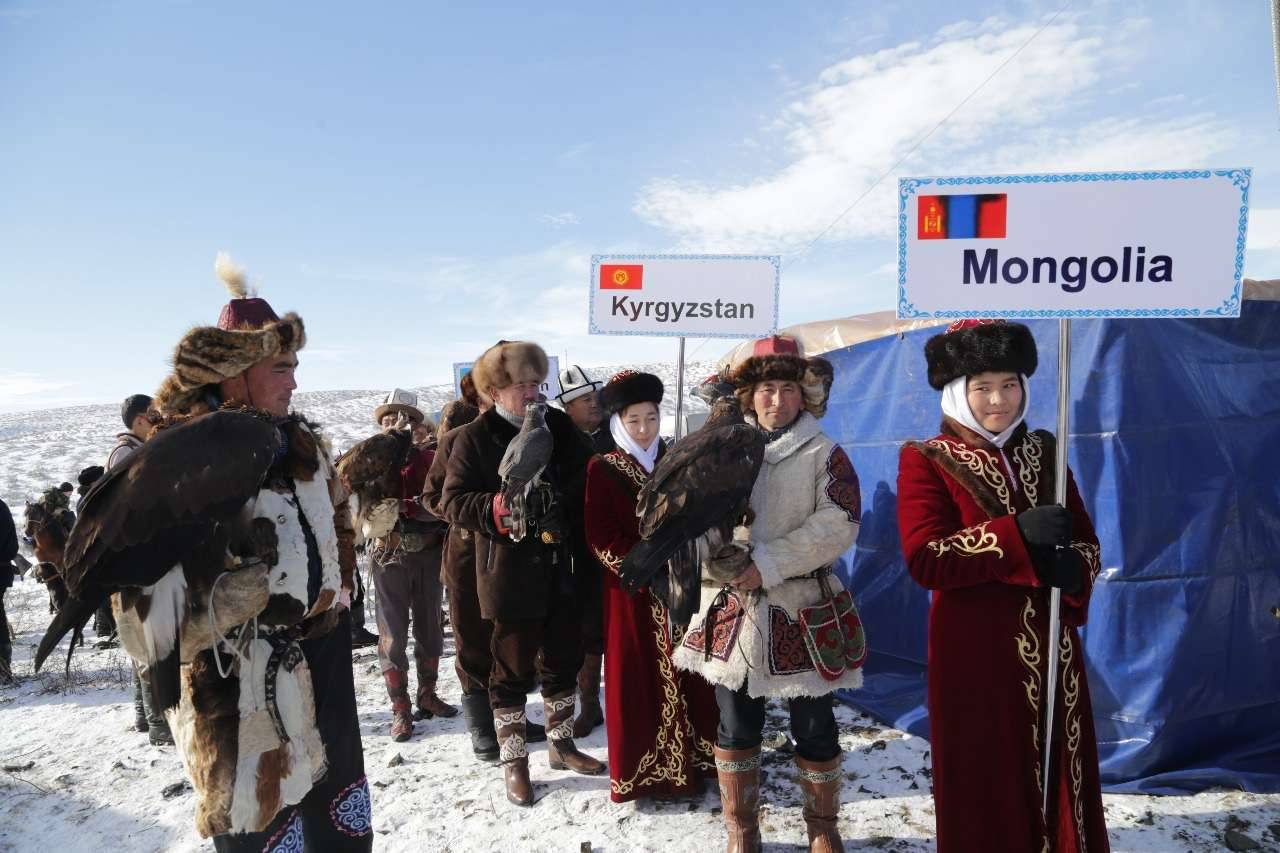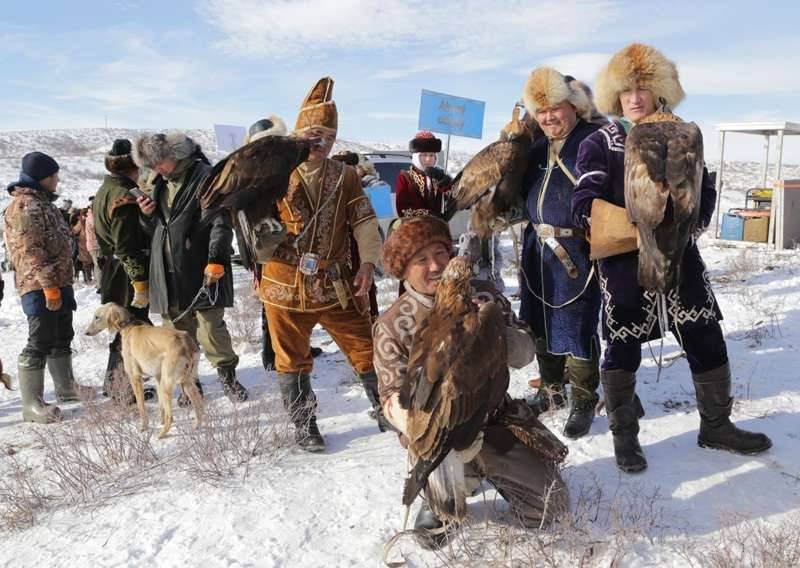 За победу соревнуется более 80 участников из Нур-Султана, Алматы и 13 областей Казахстана, а также Монголии и Кыргызстана. Они привезли 60 беркутов, ястребов и соколов, 34 собаки породы тазы. Хищники охотятся на зайцев, лис и барсуков, которые были куплены специально для соревнований.