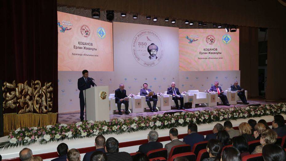 – В своей статье "Семь граней Великой степи" Президент говорит о том, что Великая степь подарила миру целую плеяду выдающихся деятелей. И в их числе, конечно, имя Бухара жырау. Сегодняшняя научно-практическая конференция даёт нам возможность глубже изучить жизнь и творчество Бухара жырау. Теперь наша главная задача – не только чтить имя легендарного мыслителя, но и сохранить его наследие, – сказал Ерлан Кошанов на открытии конференции.