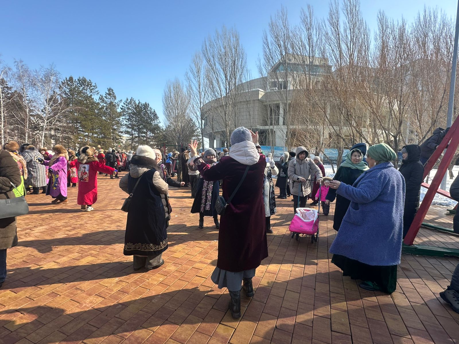 После театрализованного представления для жителей и гостей столицы начался праздничный концерт. На сцене выступают творческие коллективы и артисты. Парк наполнился атмосферой праздника. Принять в нем участие пришли десятки жителей столицы – большинство их них в национальной одежде.