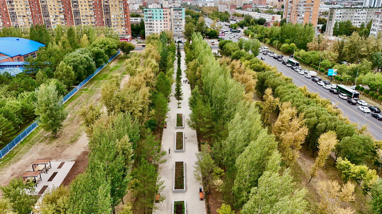 Аллея Күйшілер, расположенная вдоль проспекта Абылай хана, занимает площадь порядка 25 тыс. кв. м и объединяет жилые зоны – от многоквартирных домов до частного сектора и VIP-городка.