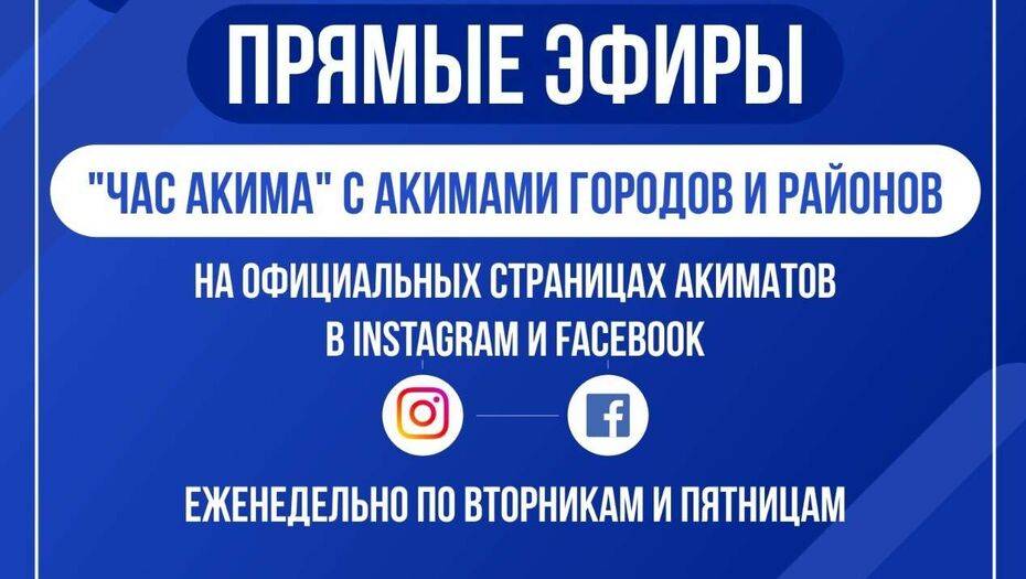 Теперь, помимо ведения собственных аккаунтов, первые руководители будут проводить в Instagram и Facebook прямые эфиры "Час акима".