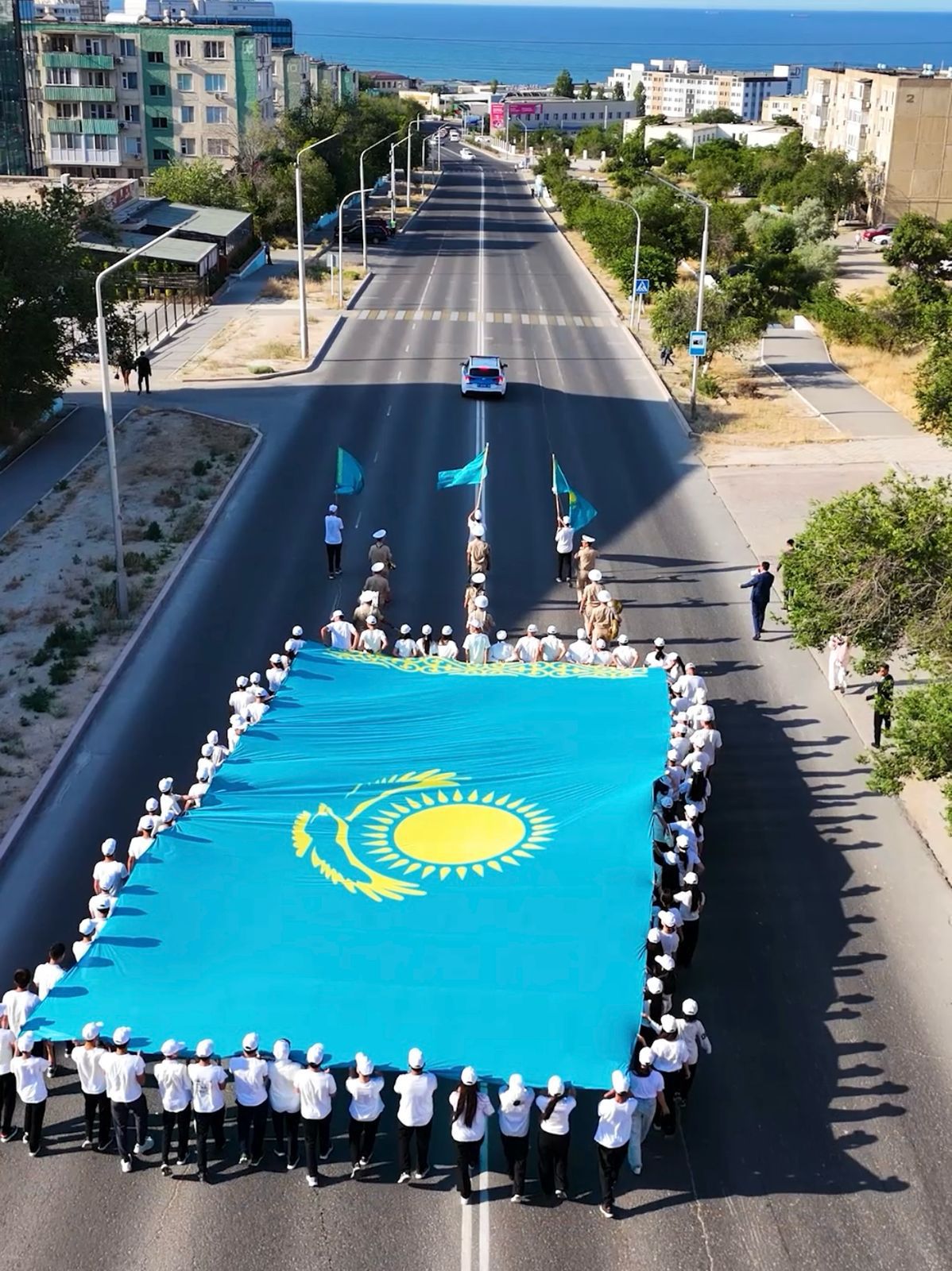 Также ко Дню государственных символов в Актау был организован патриотический флешмоб с участием 100 молодых волонтёров и военного оркестра.