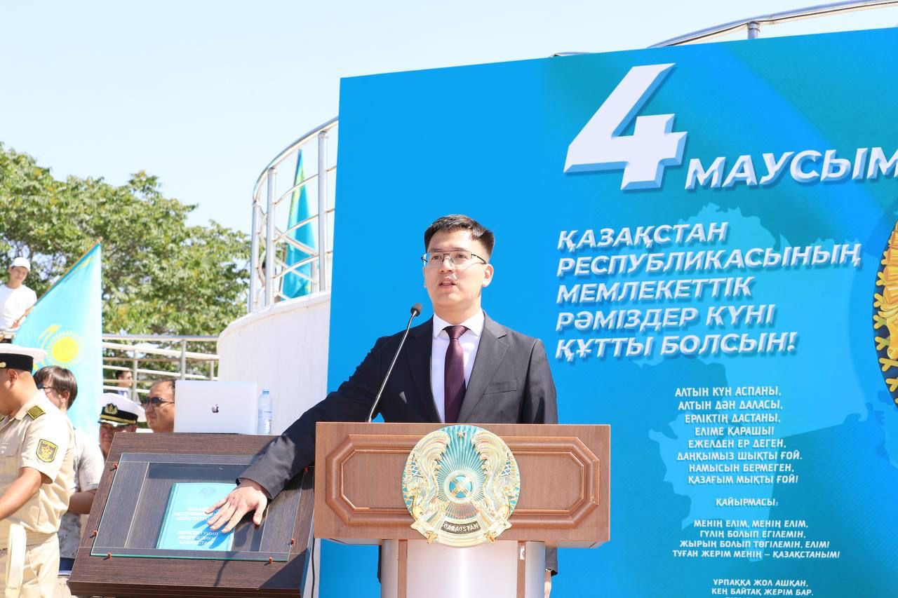 В своём выступлении аким области Нурдаулет Килыбай отметил, что государственные символы являются главной ценностью страны.