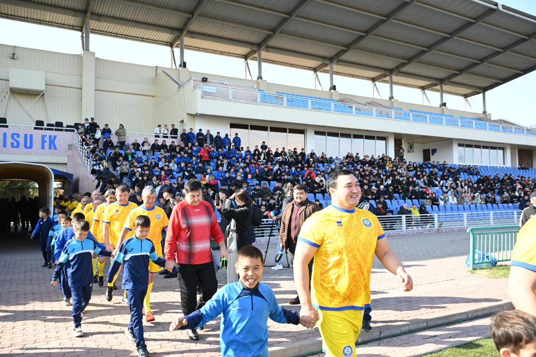 Также выступили директор ФК "Астана", видный представитель футбола страны Михаил Гурман, легендарный футбольный вратарь, ветеран спорта Куралбек Ордабаев, олимпийский чемпион по футболу Евгений Яровенко, пожелавшие жетысусцам новых успехов в спорте.
