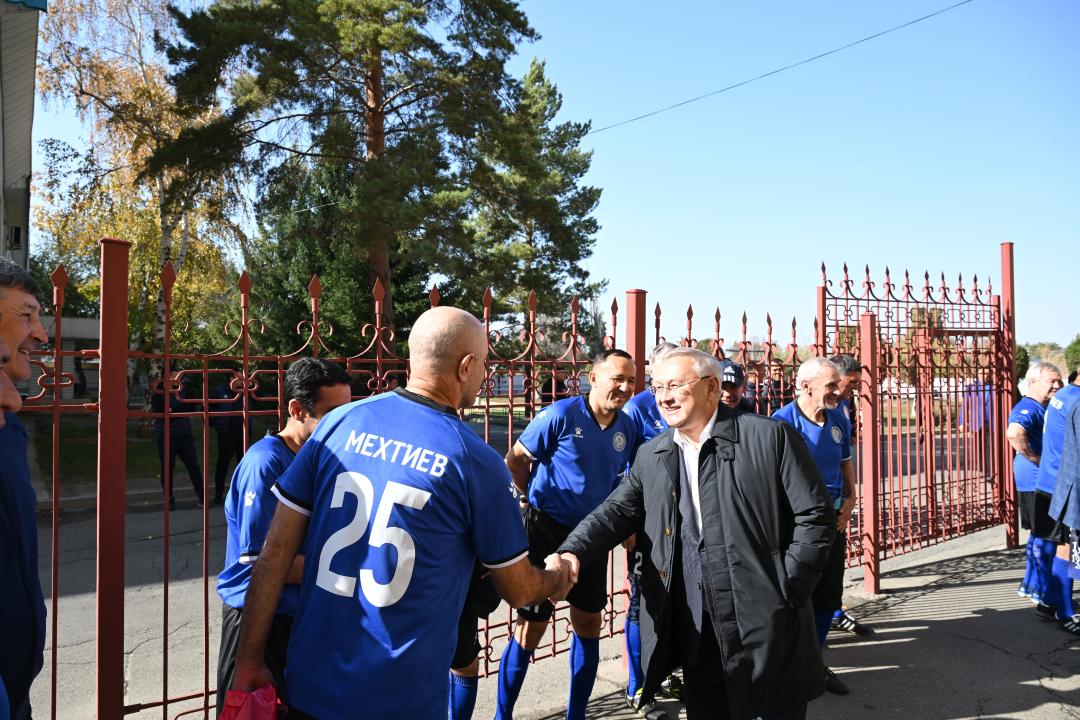 Затем спортсмены-ветераны вышли на футбольное поле в составе национальной сборной Казахстана и сборной любительских команд Жетісу. В составе республиканской команды наряду с вышеназванными футболистами были Ваит Талгаев, Сергей Волгин, Берик Аргымбаев, Аскар Кожабергенов и другие ветераны, а в команде области – заместитель акима области Диас Есдаулетов, руководитель областного управления физической культуры и спорта Улан Рыскул, главный тренер ФК "Жетісу" Самат Смаков, директор ФК "Жетісу" Марк Гурман и другие граждане. Товарищеский матч завершился вничью со счётом 2:2.