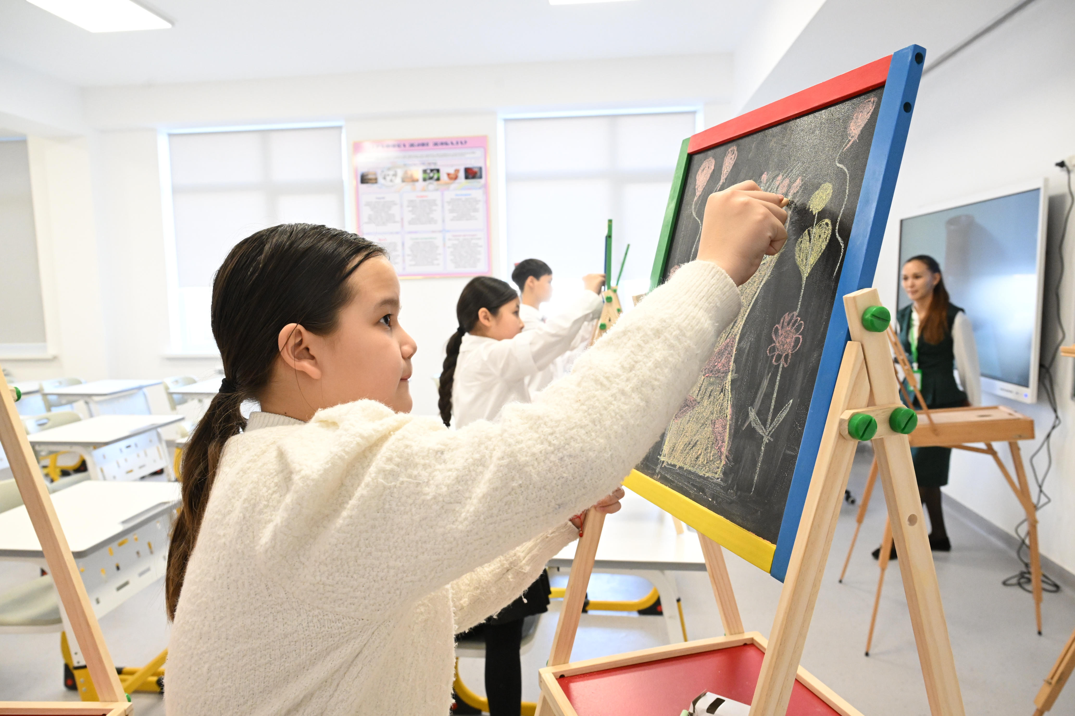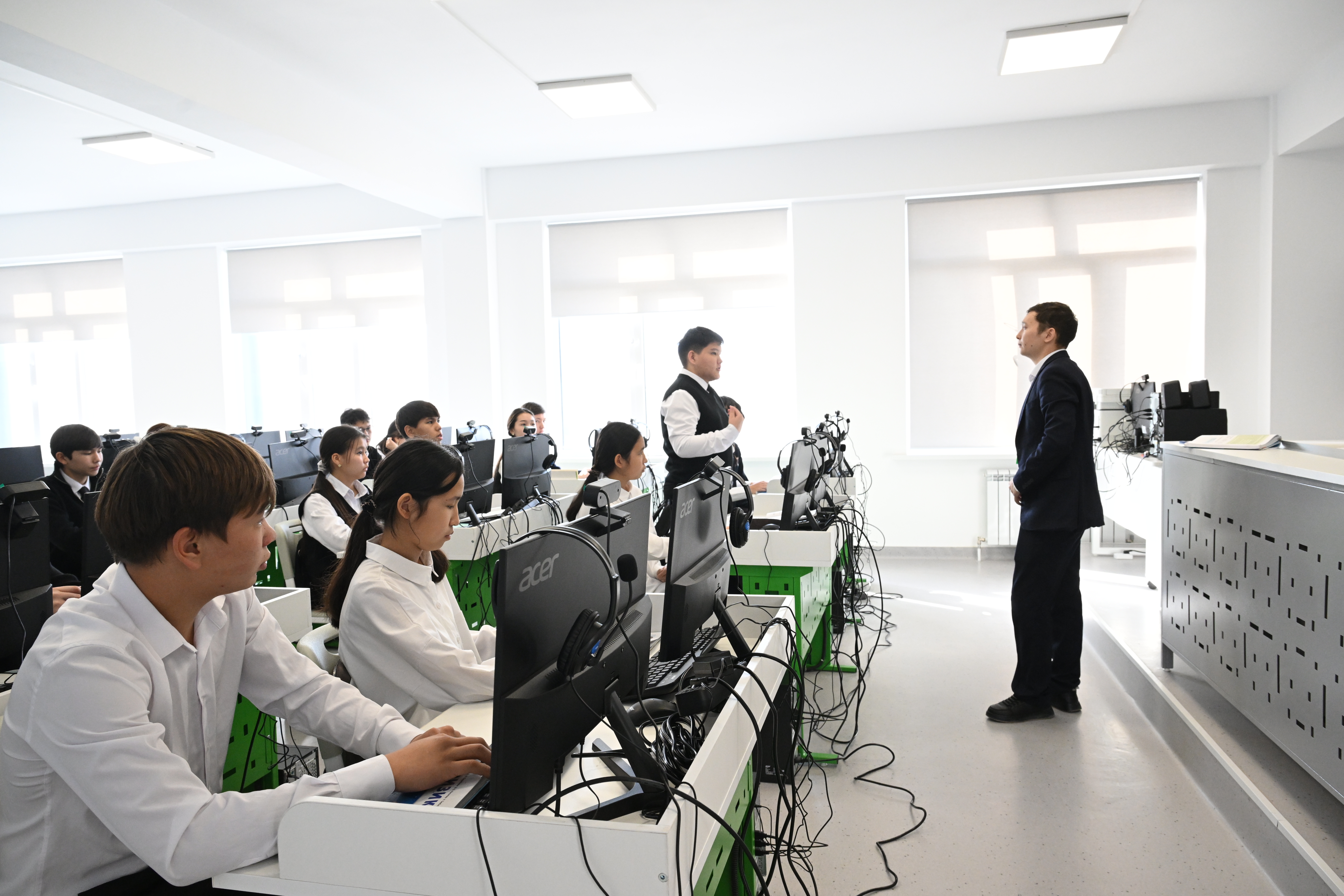 После этого гости и все желающие посетили школу. Новая школа оборудована в соответствии с современными требованиями, созданы все условия для всестороннего развития учащихся. Предусмотрены новые предметные кабинеты, кабинеты робототехники, лингвистики, STEM-лаборатория, библиотека, мастерская, хореографический зал, столовая и другие необходимые классы и залы. В школе работают 59 учителей. Среди них молодые специалисты, которые только что закончили обучение.