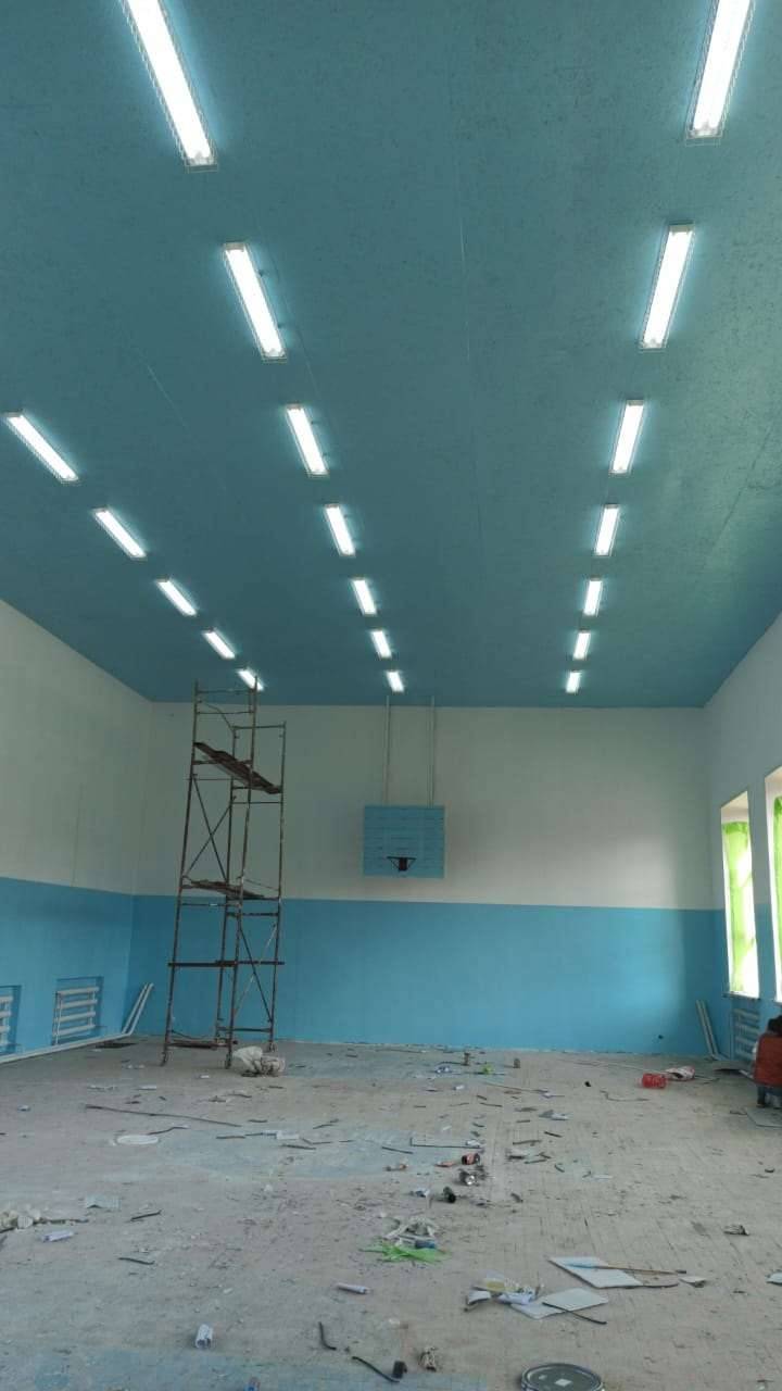 На сегодня строители заменили кровлю, установили пластиковые окна, проведён монтаж наружных сетей канализации, полы покрыты керамогранитом и керамической плиткой. Ведутся работы по облицовке фасада и благоустройство.