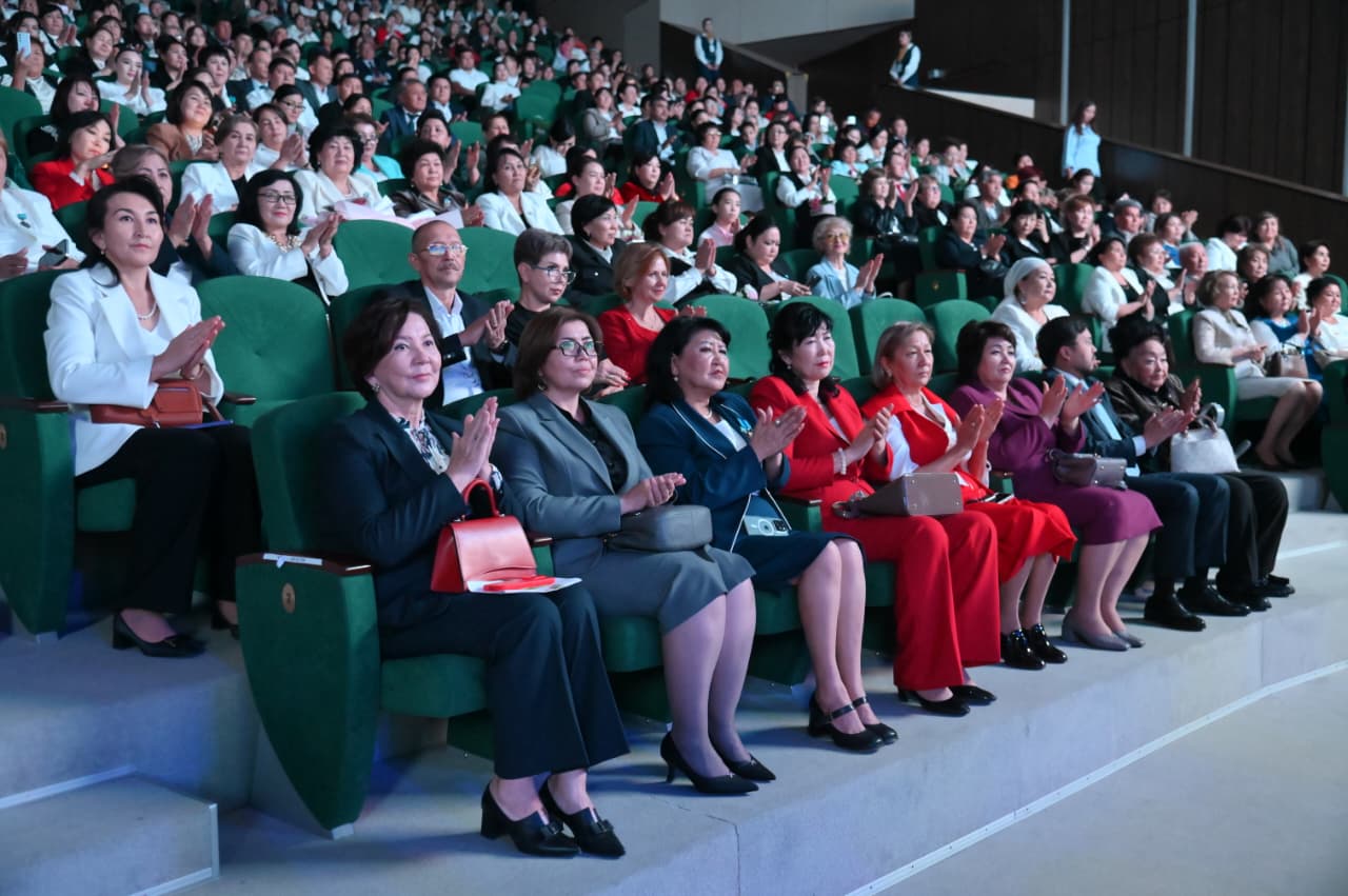 В Шымкенте под сводами дворца "Қызғалдақ" на торжественное собрание под названием "Учитель – светоч нации" собралось более 2000 педагогов, ректоры высших учебных заведений, руководители организаций технического и профессионального образования, учителя-ветераны, аким Шымкента, председатель городского маслихата, а также акимы районов и руководители управлений.