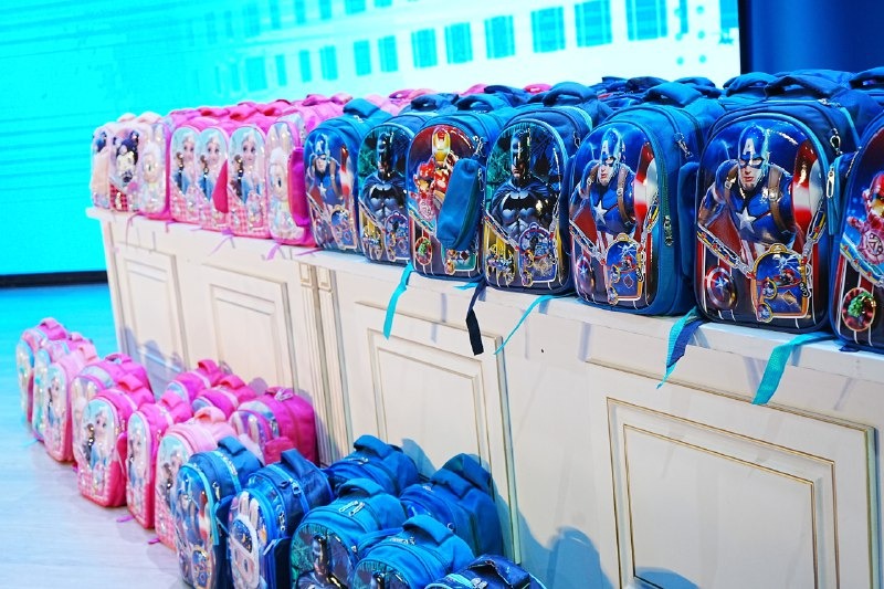 При непосредственном участии члена городской АНК и Совета старейшин, предпринимателя Аарипджана Халназарова в рамках акции 100 школьникам из социально уязвимых и многодетных семей были переданы школьные принадлежности (портфели, тетради, пеналы, цветные ручки и т. д.) на сумму 1,5 млн тенге.