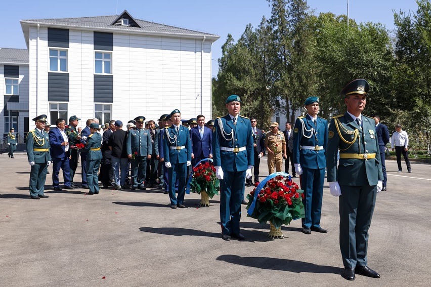 В мероприятии приняли участие министр обороны Казахстана генерал-лейтенант авиации Даурен Косанов, аким Шымкента Габит Сыздыкбеков, ветераны Вооружённых сил, личный состав колледжа, а также воспитанники военно-патриотического движения "Жас сарбаз".