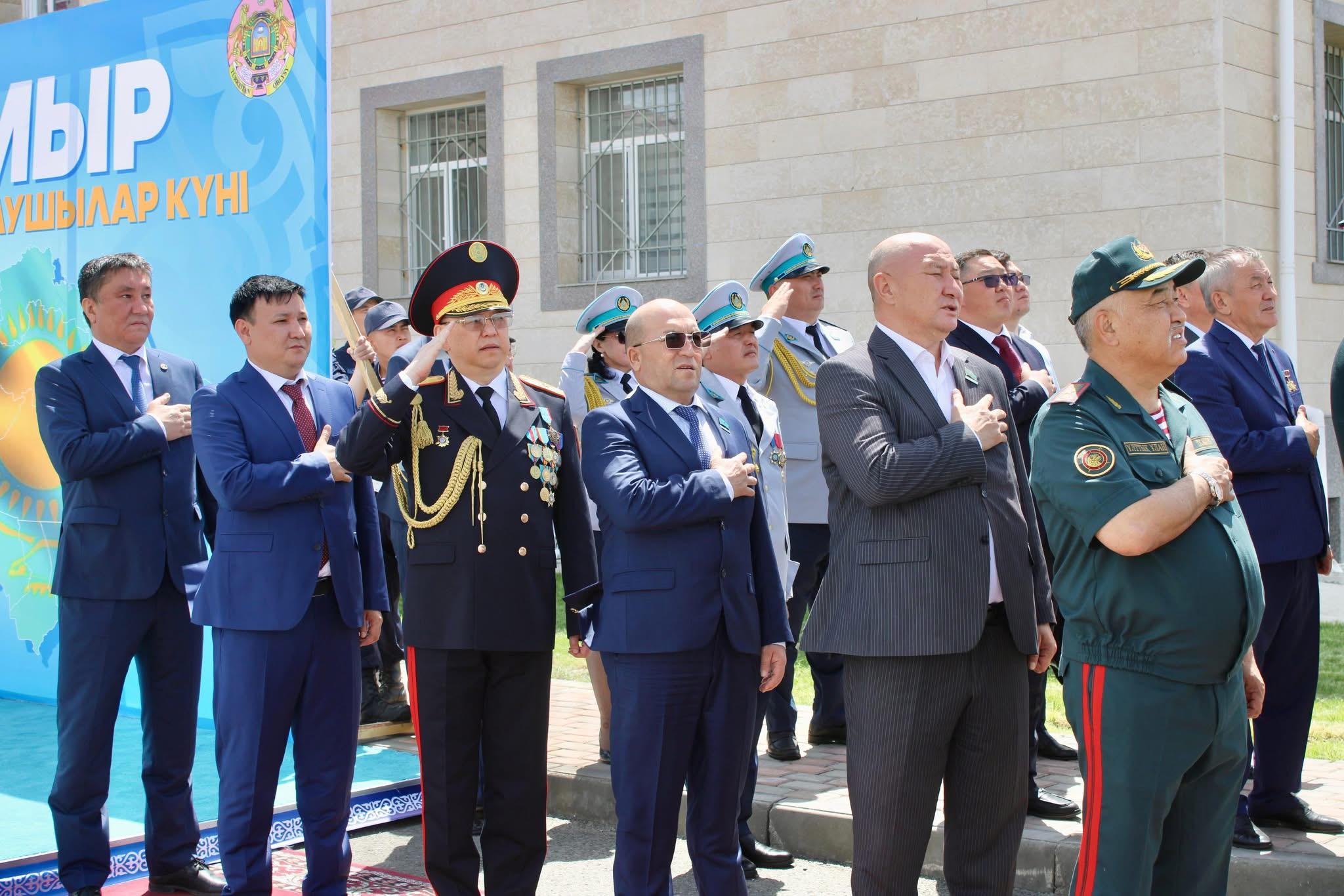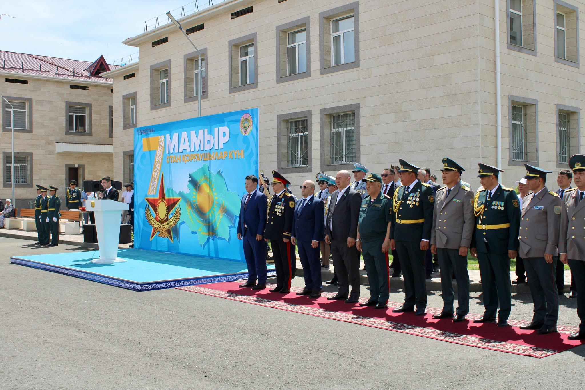 В патриотическом мероприятии, прошедшем в воинской части №5574 Национальной гвардии МВД РК, приняли участие заместитель акима Туркестанской области Ертай Алтаев, председатель областного маслихата Нуралы Абишев, начальник департамента полиции Туркестанской области Мурат Кабденов. Они поздравили офицеров, солдат и всех мужчин с Днём защитника Отечества и 80-летием Победы в Великой Отечественной войне.