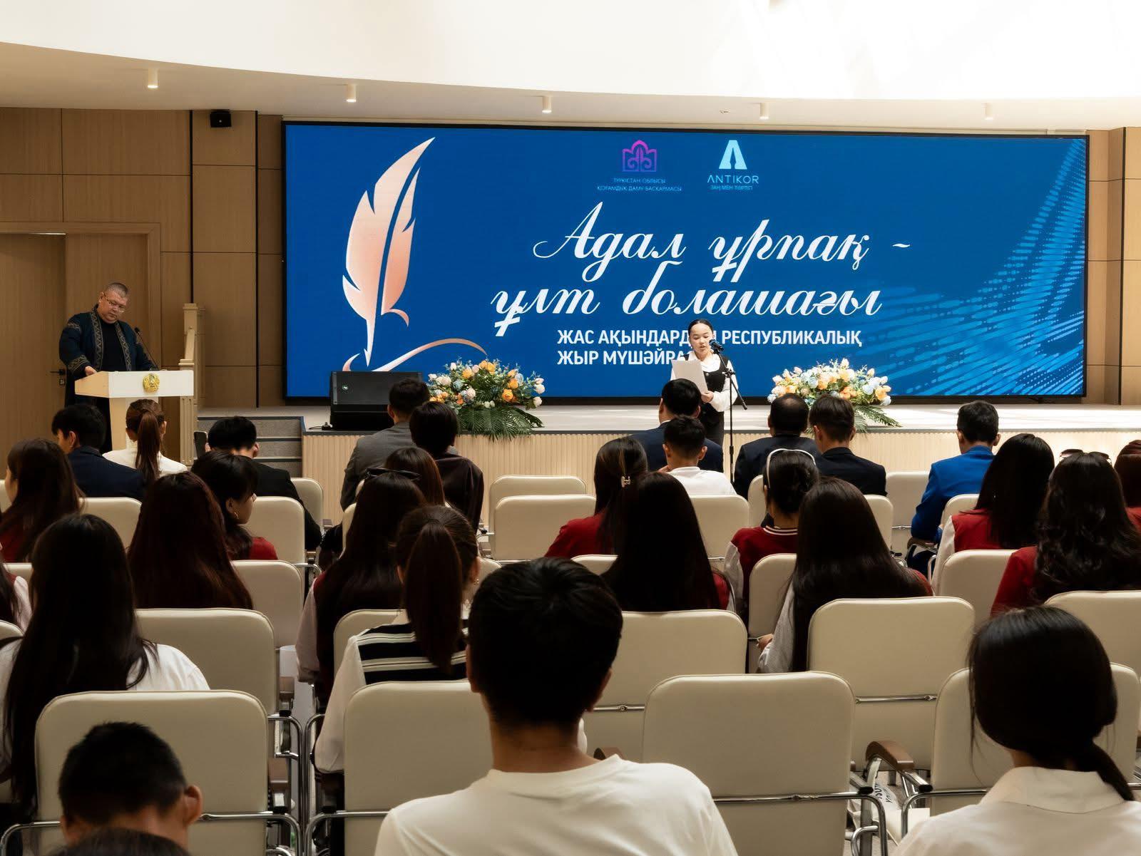 В целях укрепления идеологии закона и порядка департамент Агентства РК по противодействию коррупции по Туркестанской области и акимат Туркестанской области провели республиканский поэтический конкурс молодых поэтов "Адал ұрпақ – ұлт болашағы". В мероприятии, организованном в целях формирования антикоррупционной культуры и пропаганды принципов честности, приняли участие молодые поэты из городов республиканского значения и областей.