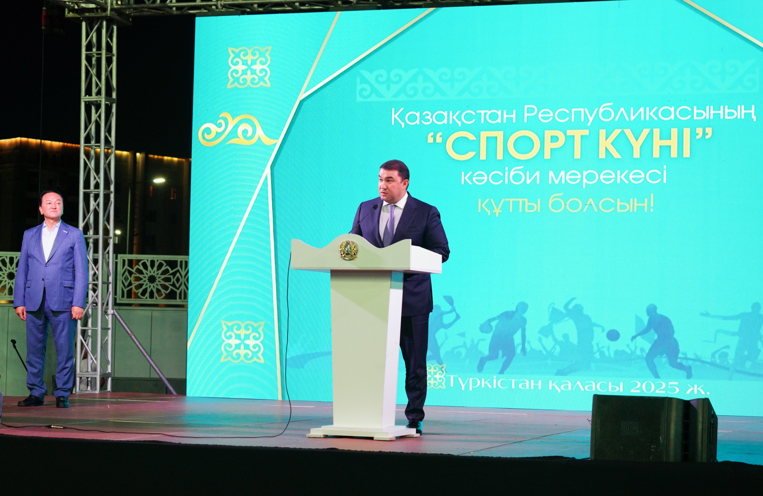 "Этот праздник знаменателен не только для профессиональных спортсменов и тренеров, но и для любителей спорта, для всех, кто ведёт здоровый образ жизни. Туркестанский регион всегда придавал импульс национальному спорту. Мы укрепляем будущее страны, оказывая поддержку молодёжи", – сказал аким области.
