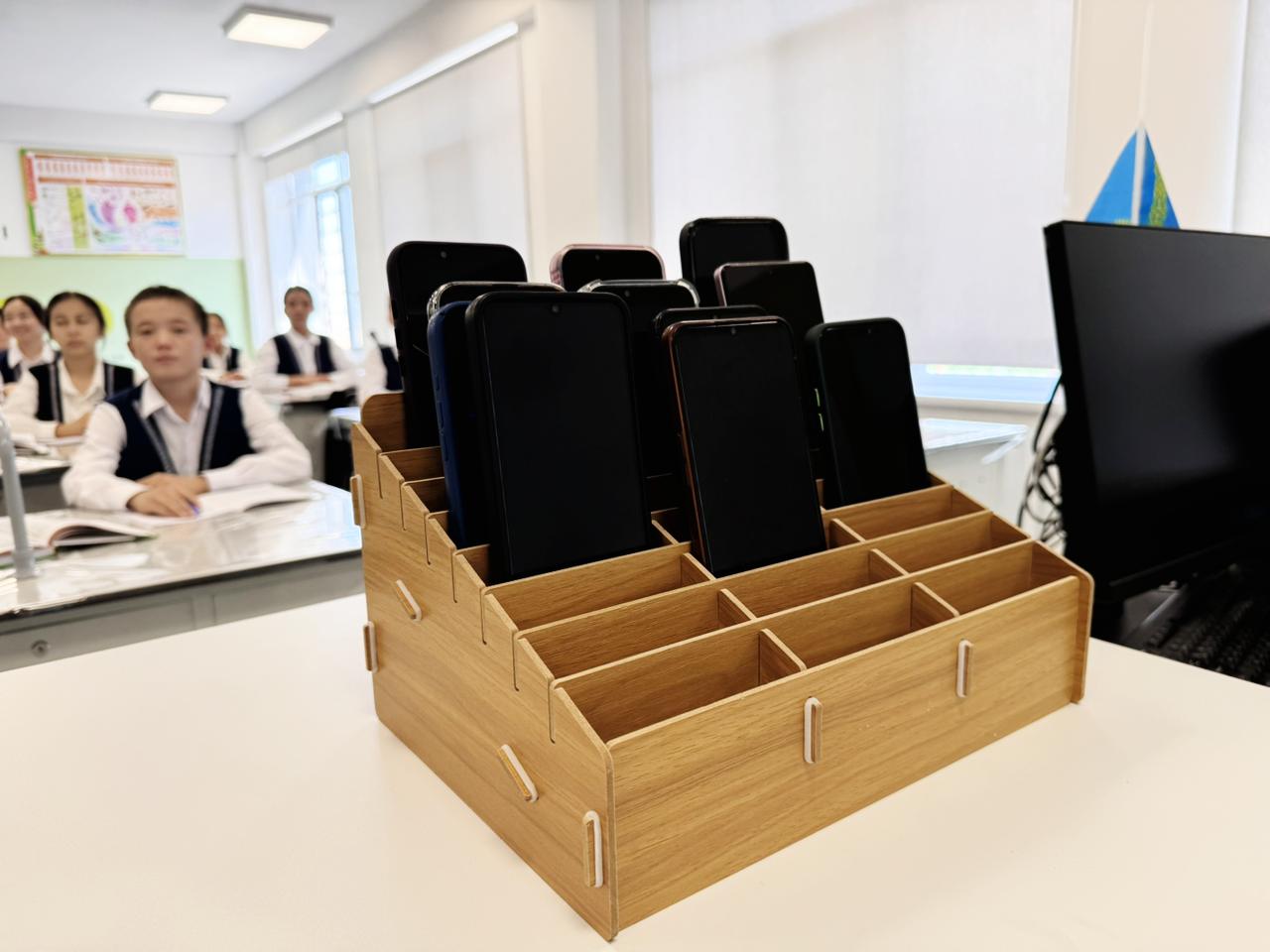 В каждом классе установлены специальные боксы для хранения телефонов. Школьники могут воспользоваться своими устройствами только на переменах, вне учебного времени.