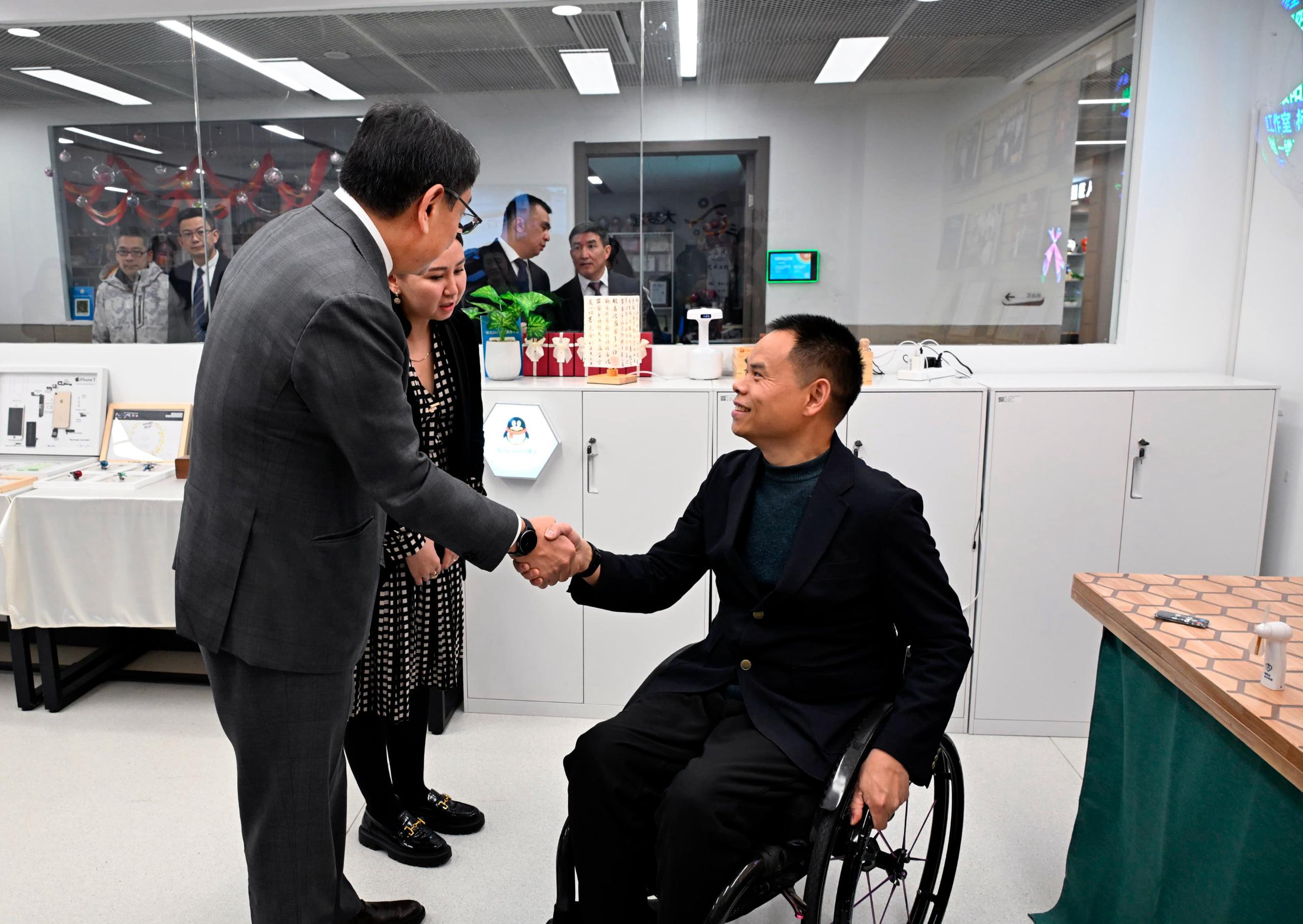 Встреча состоялась в Шанхайском центре по трудоустройству лиц с инвалидностью Sunshine 201, который является многофункциональной платформой, предоставляющей людям с особыми потребностями услуги по трудоустройству, профессиональному обучению, консультациям и участию в программах бизнес-инкубации. Кроме того, в центре ежегодно проводится реабилитация и медицинское обслуживание людей с особыми потребностями. За последние годы эффективность реабилитационных услуг в центре достигла более 90%.