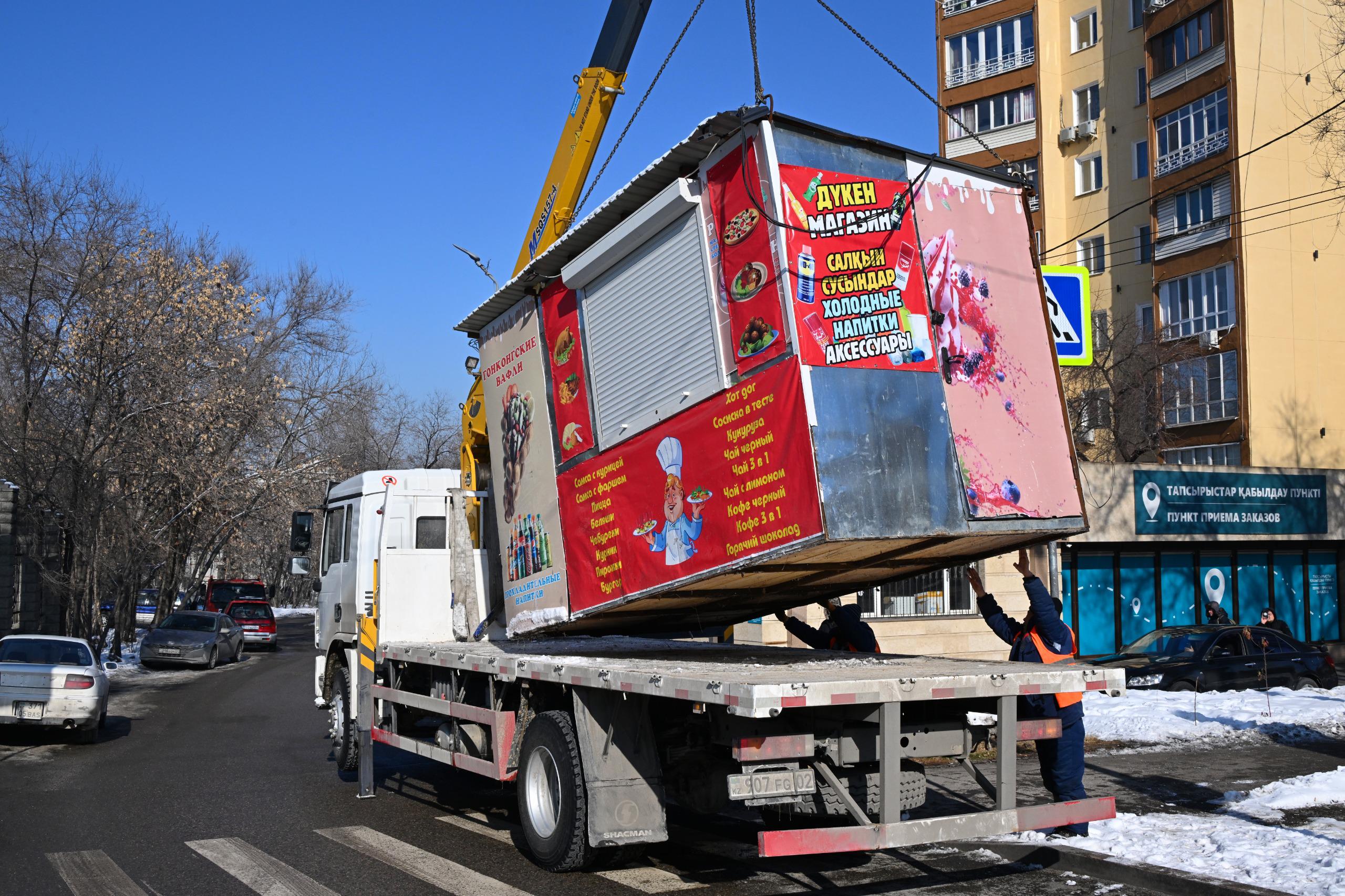 - Так, в 4-м микрорайоне Ауэзовского района по проспекту Абая были демонтированы две торговые точки, которые занимались продажей выпечки и уличной еды. При этом объекты не имели доступа к водоснабжению и водоотведению, а подключение к электросетям было осуществлено также без разрешительных документов.