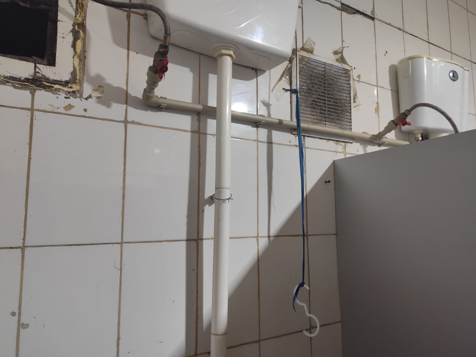 В других кабинках к шнурам, ведущим к бачкам, прикреплены абсолютно непонятные рандомные предметы, похожие на детали от плечиков для одежды. Запах в туалетах стоит невыносимый, он вызывает тошноту, кашель и резь в глазах.