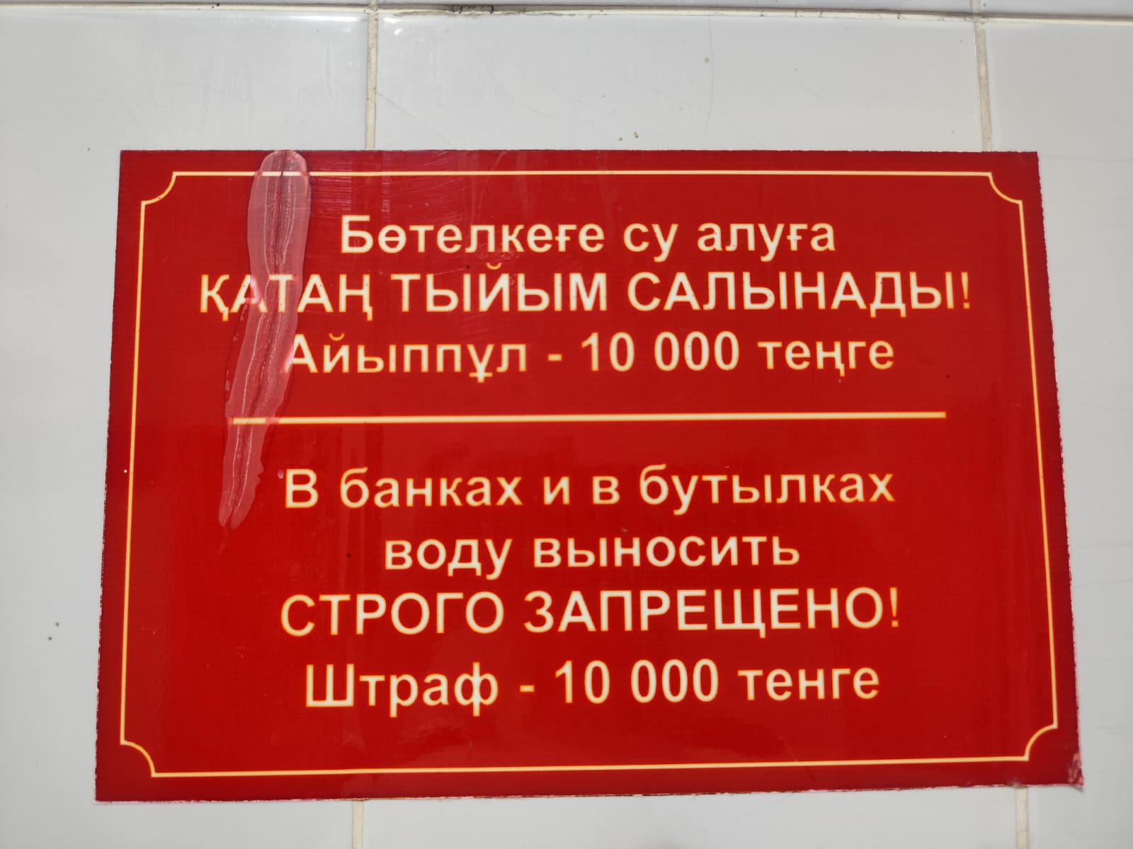 На железнодорожном вокзале Алматы-2 возле раковин красуется другое объявление, предупреждающее о запрете на мытьё ног.