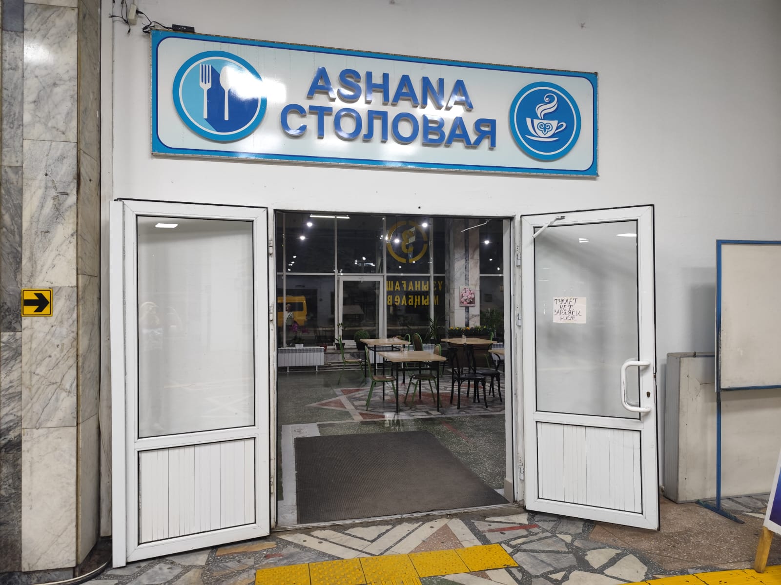 Удивительно, что в столовой автовокзала туалета нет. Поэтому надеяться на то, что вы утолите голод и заодно потом справите нужду, не приходится. На двери асханы висит соответствующее объявление: "Туалет нет, зарядки нет!".