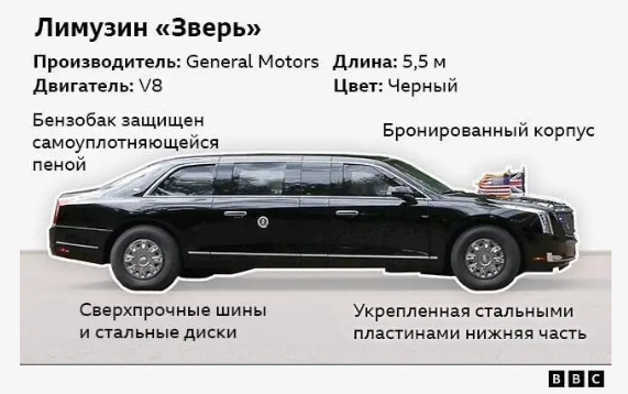 Приземлившись, Трамп передвигается в том числе на Cadillac One – доработанном для перемещений президента лимузине, получившем по понятным причинам прозвище "Зверь".