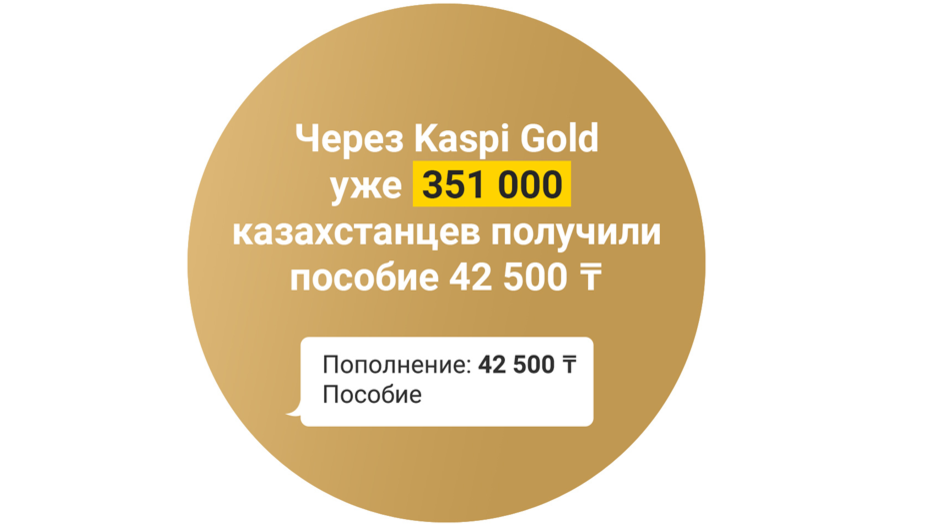 "Сегодня мы на практике видим, как самые современные цифровые технологии от Kaspi.kz помогают государству в короткие сроки реализовывать программы социальной поддержки населения, а казахстанцам – получать пособие удобно и, самое главное, безопасно, не выходя из дома. Уже 351 тысяча наших любимых клиентов получила пособие 42 500 тенге через Kaspi Gold".
