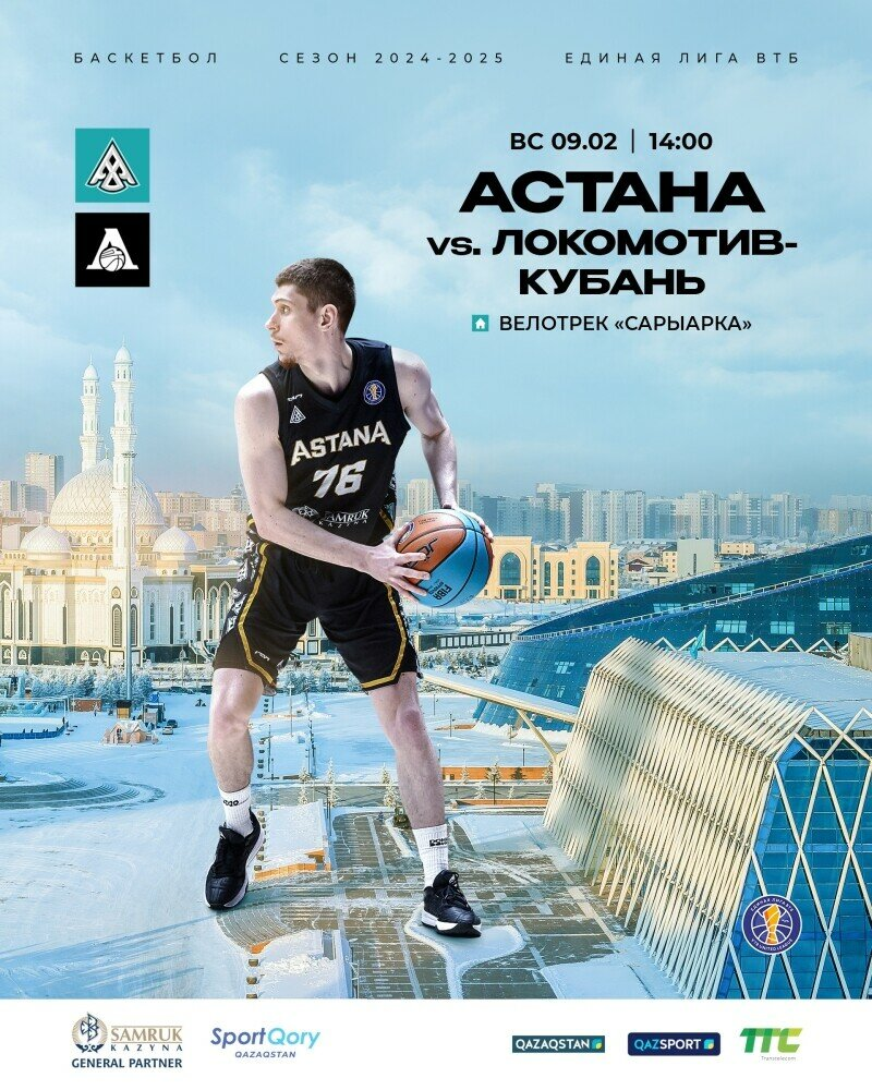 9 февраля в 14.00 на велотреке "Сарыарка" состоится матч Лиги ВТБ: "Астана" vs "Локомотив-Кубань". В рамках чемпионата Единой лиги ВТБ казахстанский клуб "Астана" встретится с сильным соперником "Локомотив-Кубань" из Краснодара. Стоимость билетов – от 800 тенге.