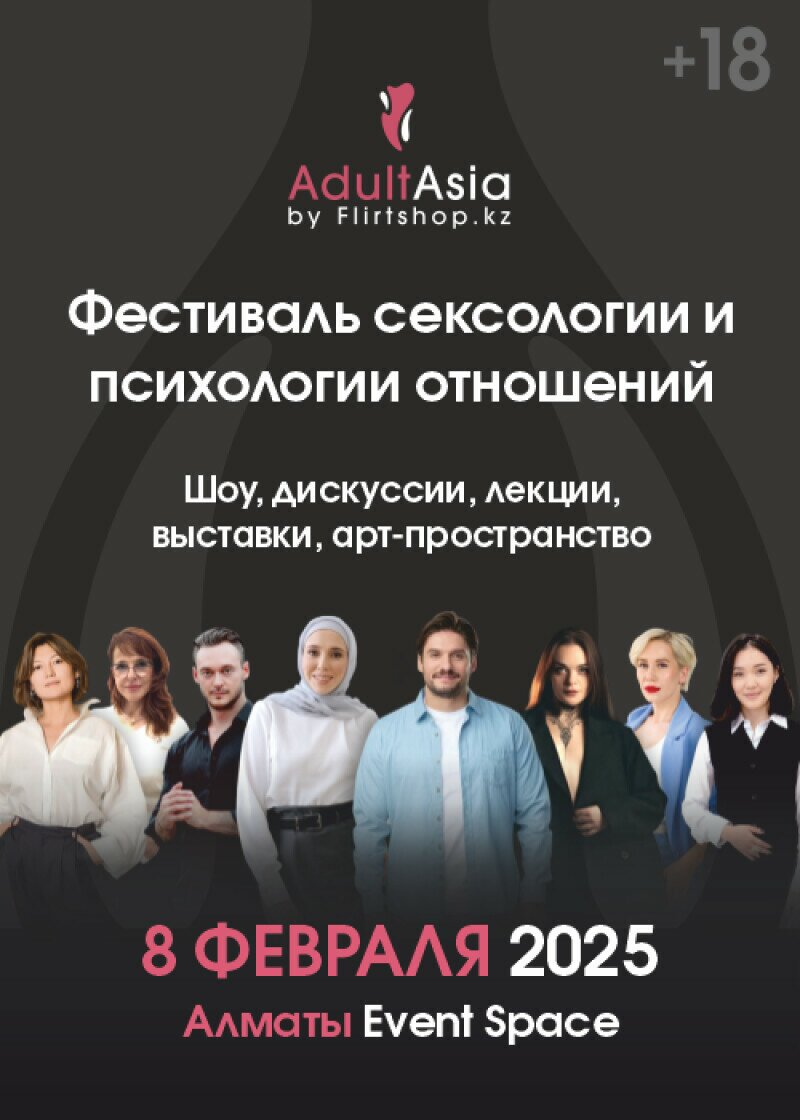 8 февраля с 12.00 до 22.00 в ТРК "Forum", Event Space пройдёт международный фестиваль сексологии и психологии отношений Adult Asia. Участников ждёт насыщенная программа: TED-программа и панельные дискуссии о сексе и теле, exotic pole dance, выставка для взрослых, показ нижнего белья, арт-зона с фотографами и художниками в стиле ню, шибари-зона и арт-практика Waxplay. Стоимость билетов – от 15 000 тенге.