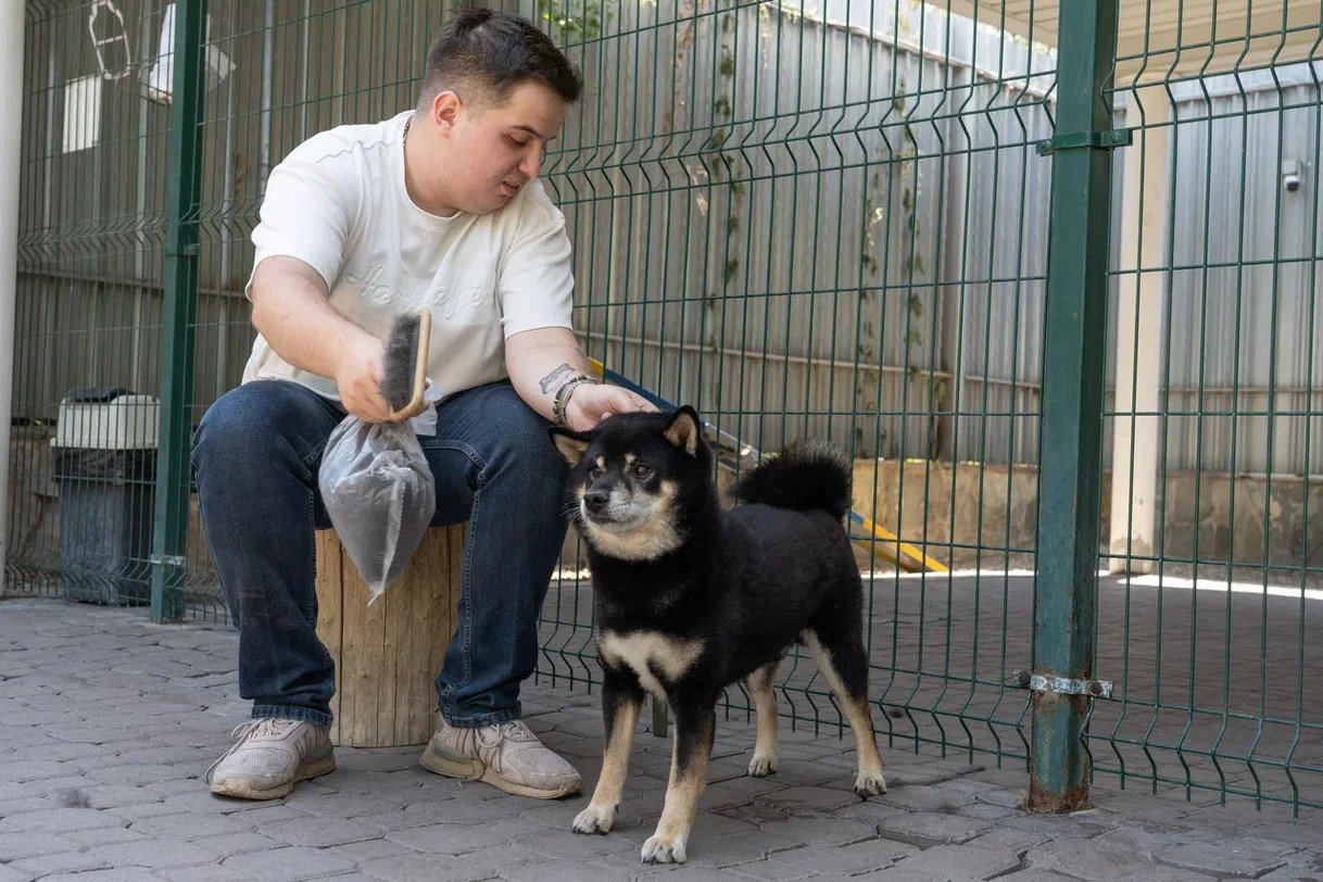 "Мой питомец породы сиба-ину. Чибо восемь лет, и он с радостью занимается на беговой дорожке. Пёс всегда сопровождает меня на работу, и чтобы он с толком проводил время и не набирал лишний вес, мы регулярно заглядываем в тренажёрный зал", – говорит Дмитрий Боднар.