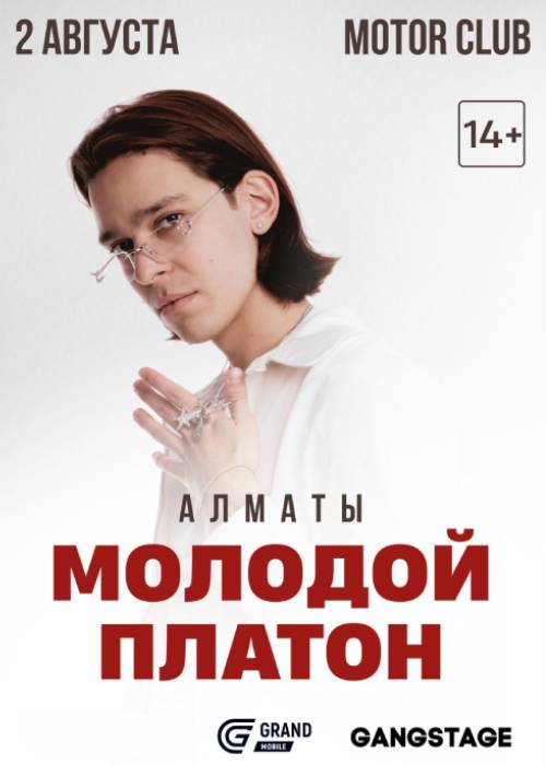 2 августа в 19.00 в клубе "Мотор" выступит с концертом Молодой Платон. Это первый в Алматы его концерт – с живым звуком, шквалом энергии. По обещаниям организаторов, событие останется в памяти гостей надолго. Стоимость билетов – от 10 000 тенге.