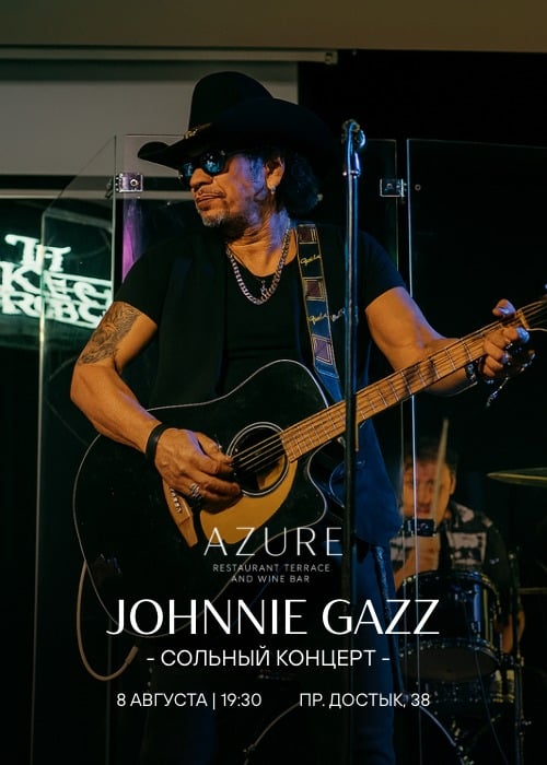 8 августа в 19.00 в ресторане Azure пройдёт сольный концерт Johnnie Gazz. Гостей ждёт мощная энергетика и не просто музыка, а настоящее шоу. Стоимость билетов – от 9990 тенге.