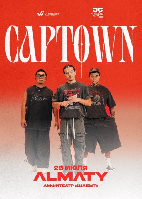 26 июля в 18.00 в летнем амфитеатре "Шабыт" состоится концерт группы Captown. Зрителей ожидают громкий и живой звук, прекрасная атмосфера и мощная энергетика, которую исполнители разделят со своими зрителями. Стоимость билетов – от 8000 тенге.