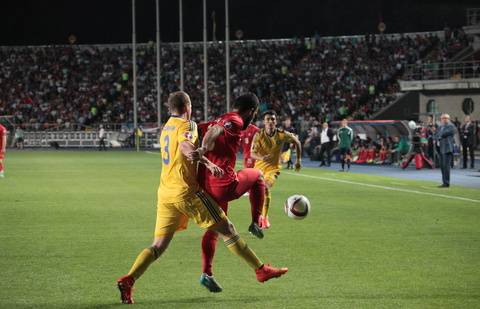 23.06. Какая хорошая атака получилась у нашей сборной! Исламхан убежал от защитника и нанёс удар по воротам турков. Мимо. Но болельщики тут же отблагодарили его овацией.