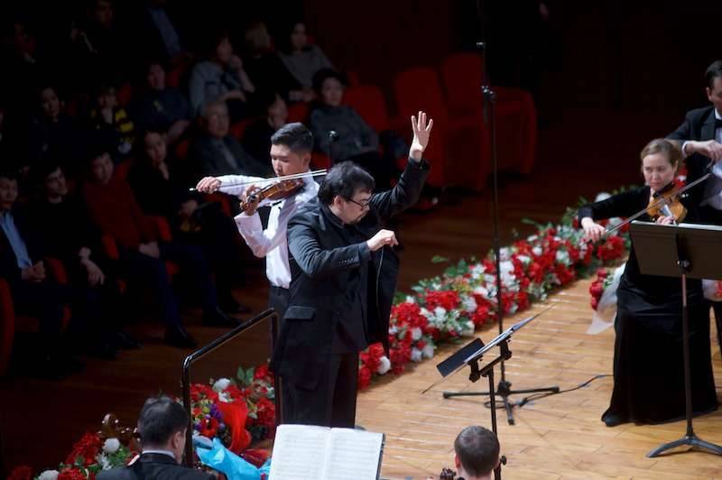 В концерте приняли участие симфонический оркестр "Астана Опера" под управлением заслуженного деятеля Казахстана, лауреата государственной премии РК Алана Бурибаева. Солист – молодой талантливый скрипач Жандос Мухамеди.