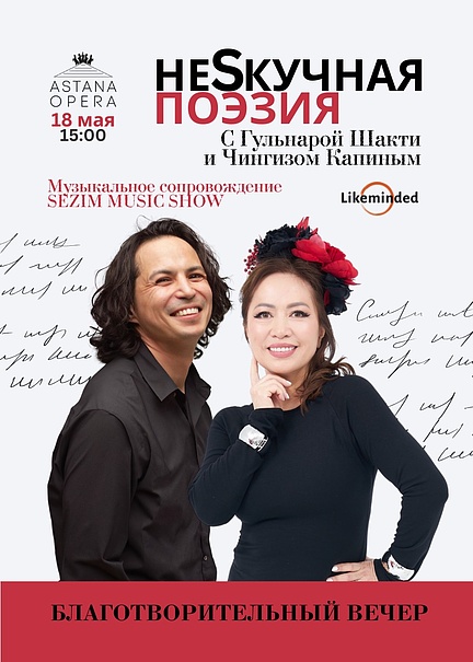 18 мая в 15.00 в театре "Астана Опера" состоится поэтический вечер "НеSкучная поэзия". На сцене прозвучат стихи поэтессы Гульнары Шакти в исполнении самого автора и других казахстанских чтецов. Музыкальное сопровождение обеспечит струнный квартет Sezim Music Show. Стоимость билетов – от 5000 тенге.