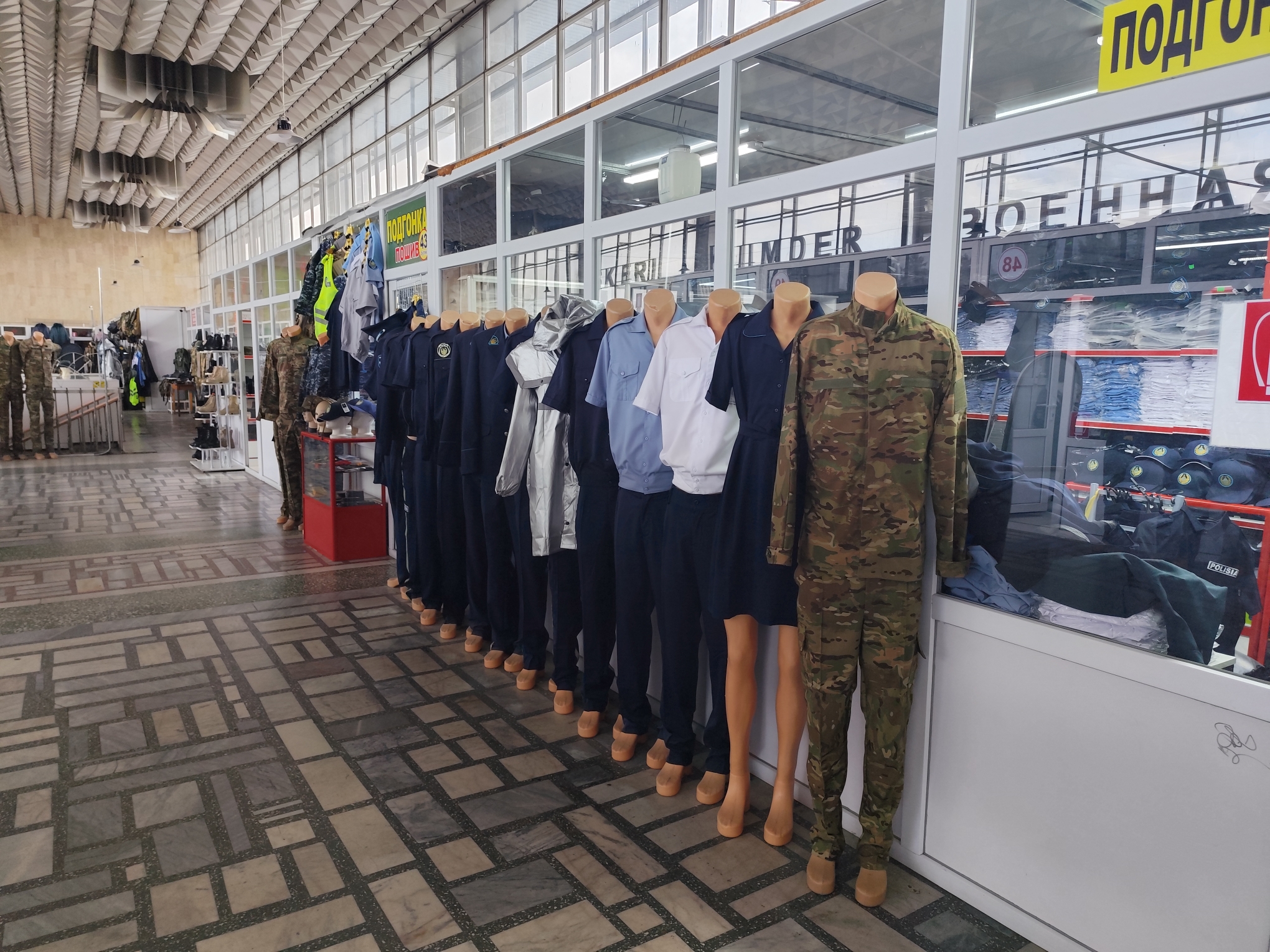 По ощущениям пассажиров, центральным объектом автовокзала является торговый объект. На втором этаже здания нашлось место для большого магазина – военторга. Алматинцы и гости города приобретают тут спецодежду и военную форму.