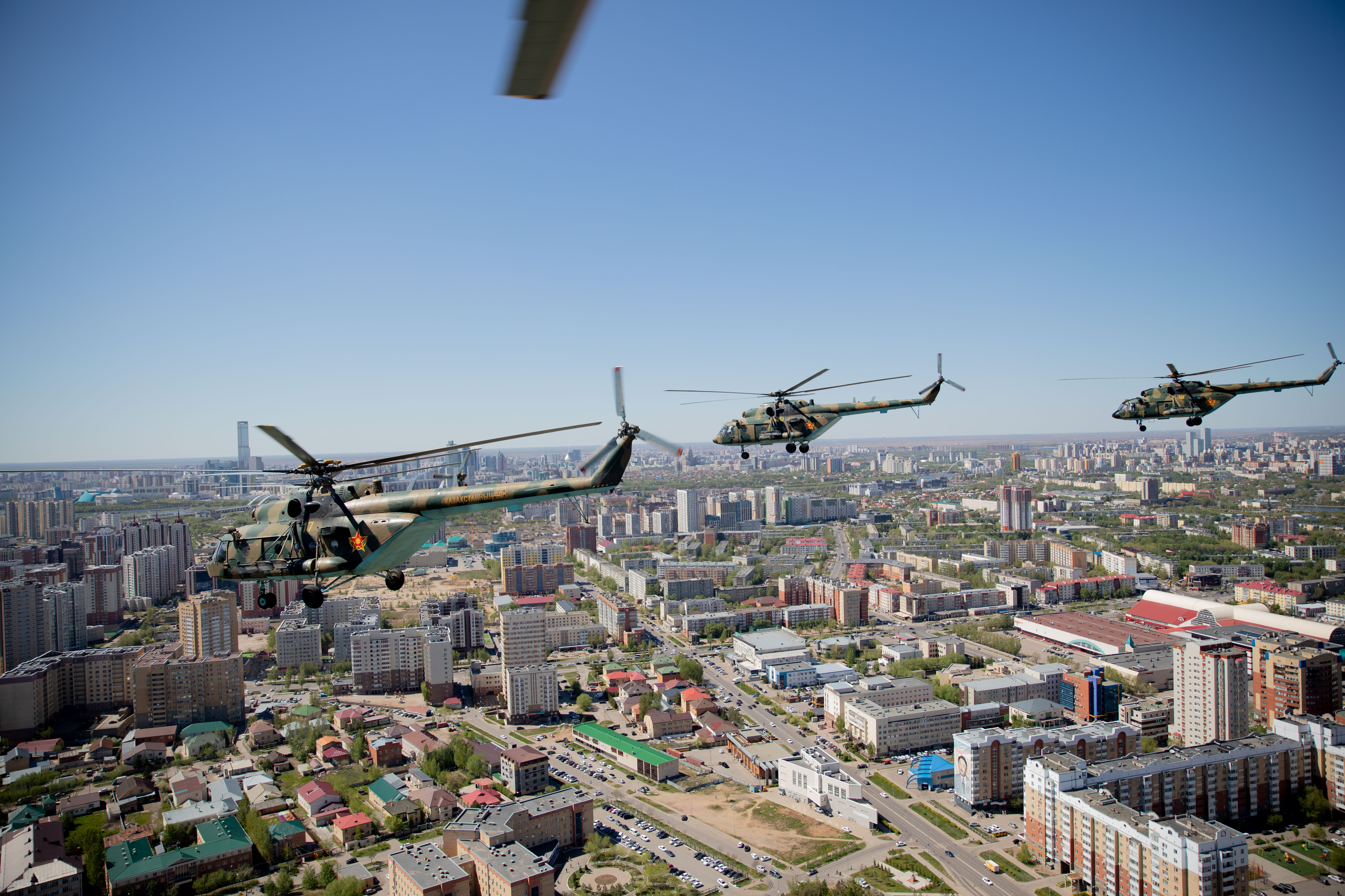 Жители Астаны уже несколько дней слышат и наблюдают, как в небе над столицей то и дело проносятся истребители и летают военные вертолёты. Это лучшие представители военно-воздушных сил готовятся к предстоящему параду.