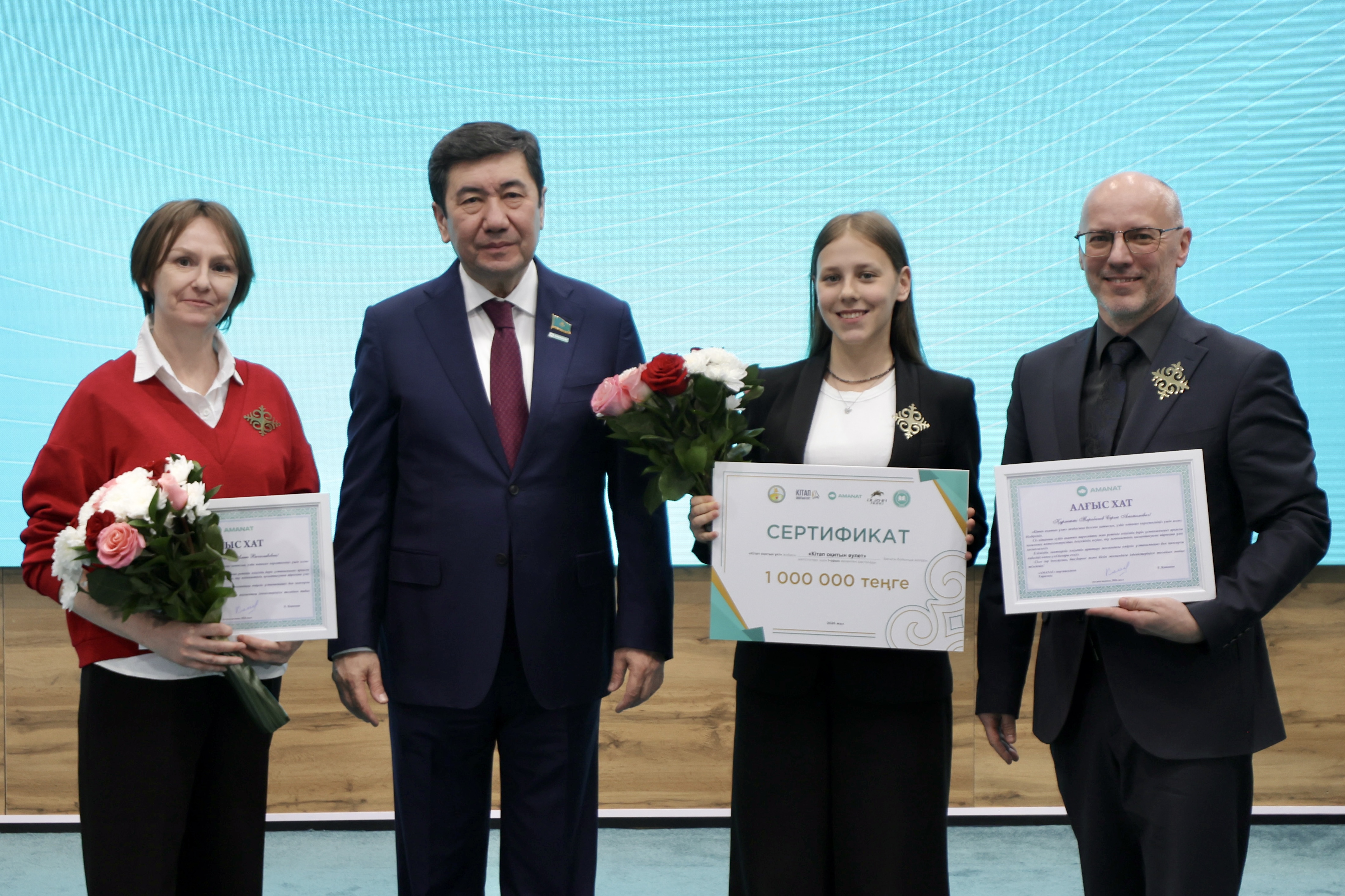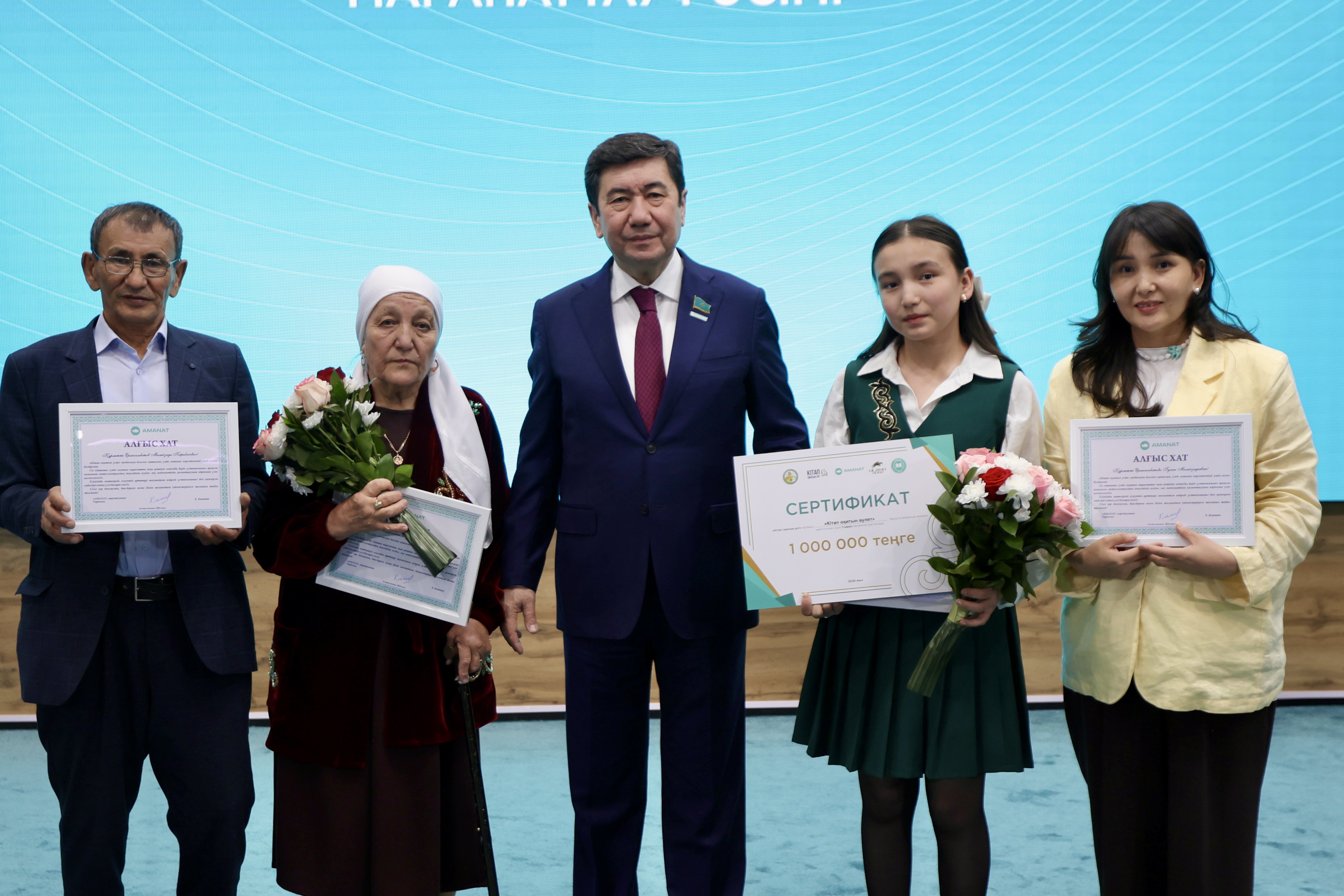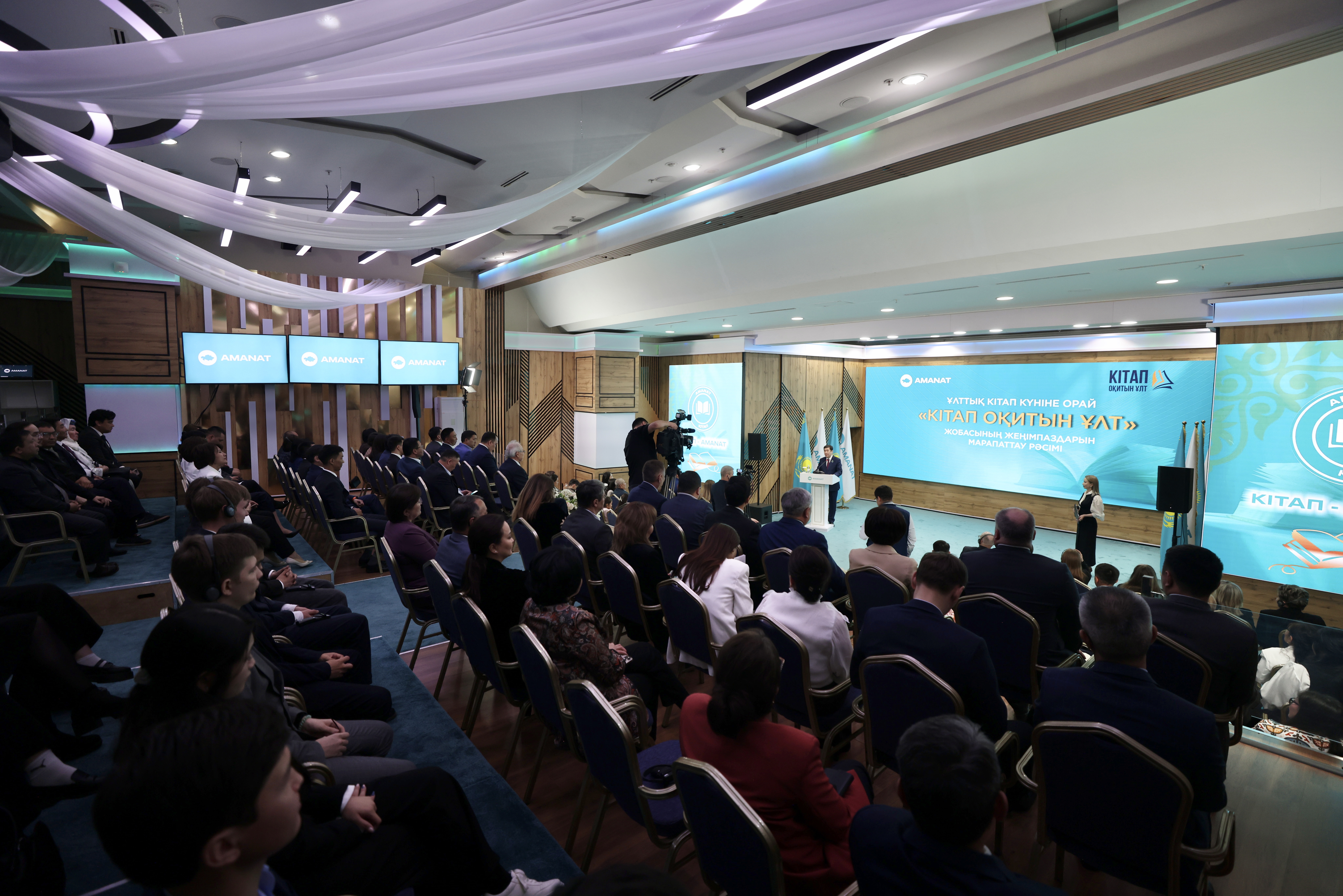 В трёх регионах – городе Шымкенте, Карагандинской и Костанайской областях пилотный проект за 8 месяцев охватил почти 190 тысяч человек, прочитавших в общем порядка 2 млн книг. В мероприятии приняли участие спикер Мажилиса, председатель Amanat Ерлан Кошанов, а также известные писатели, общественные деятели, представители творческой интеллигенции, а также победители проекта.