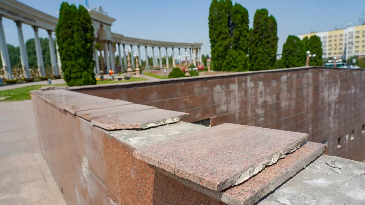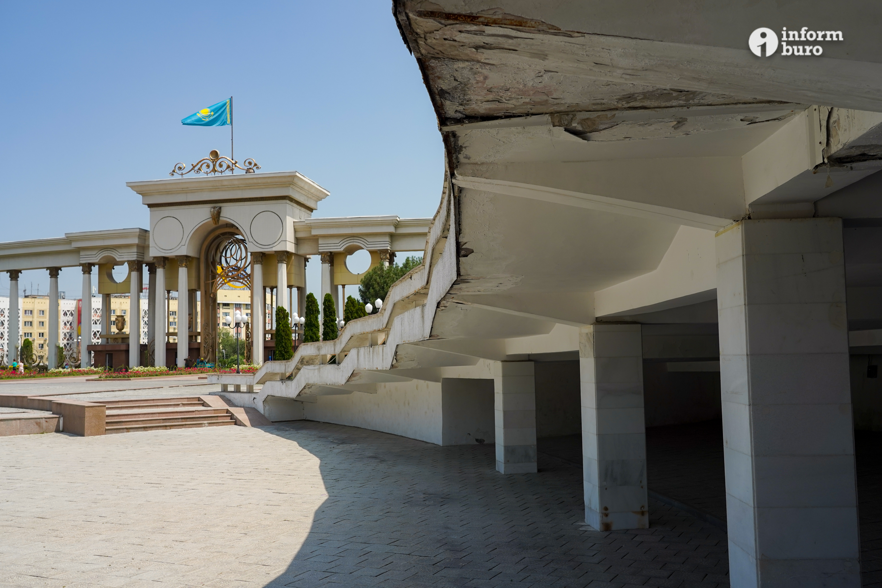Неприятные сюрпризы для посетителей дендропарка начинаются ещё у входа. Тротуарная плитка местами разбита, гранитные ограждения зияют дырами и сколами, ступеньки на мосту, ведущему к парку со стороны реки Большой Алматинки, тоже выглядят непрезентабельно. Конечно, на подобные мелочи можно и закрыть глаза, но дальнейшая картина, складывающаяся при проходе через входную группу в виде полукруглой аркады, складывается совсем удручающая.